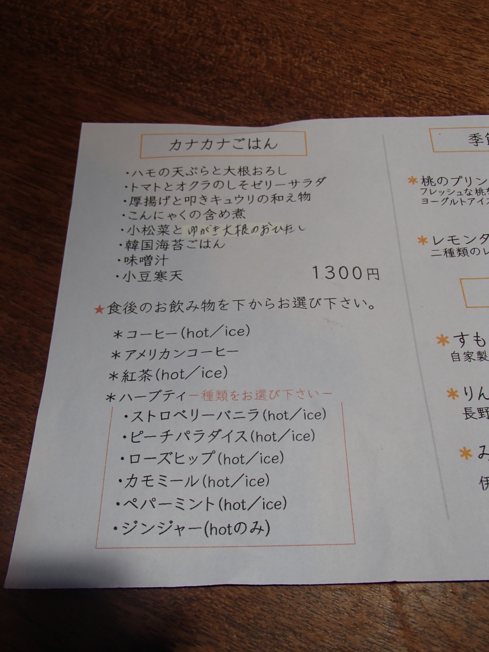 私は「カナカナごはん(1300円)」というランチセットをオーダーしました。色々な種類のおかずが食べられて、ランチとしてのボリュームもちょうど良かったです。