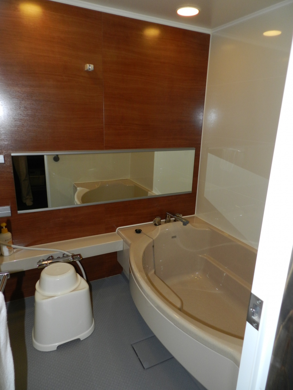 客室内バスルームは洗い場付きの広いスペースがあって、ゆったりと入れました。