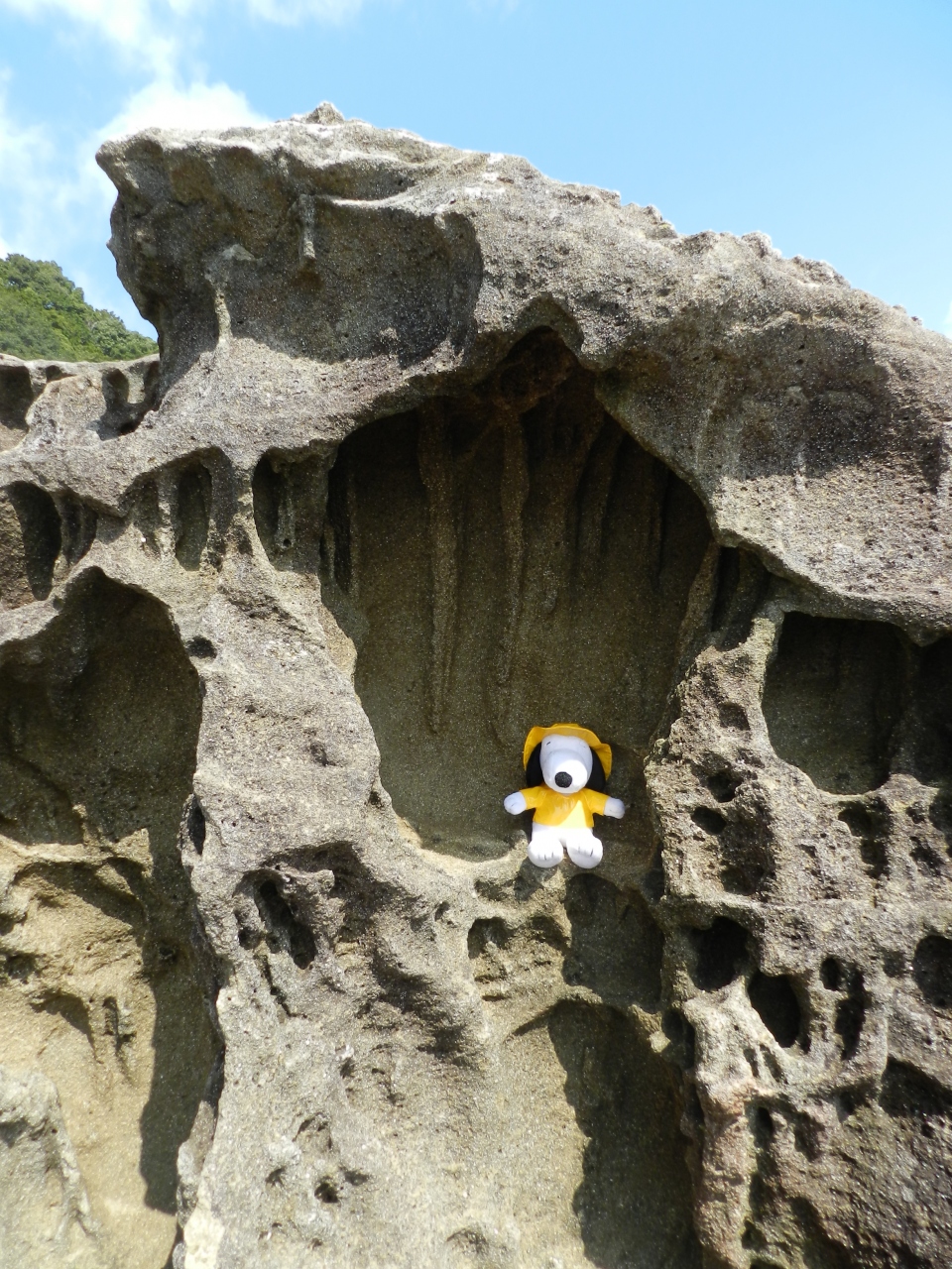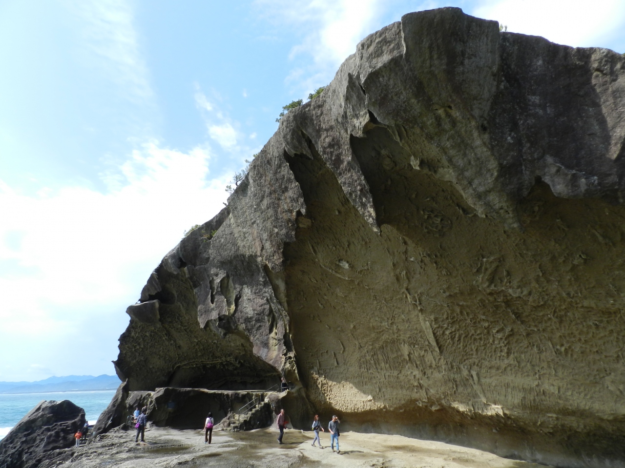 その名の通り、滝を流れる水は温泉水ですが、そのこと以上にこの滝の珍しい点は、滝を形成する岩盤に二酸化マンガン鉱床が形成されつつあるという点で世界で唯一ということです。岩盤が黒々としているのはそのせいだそうです。