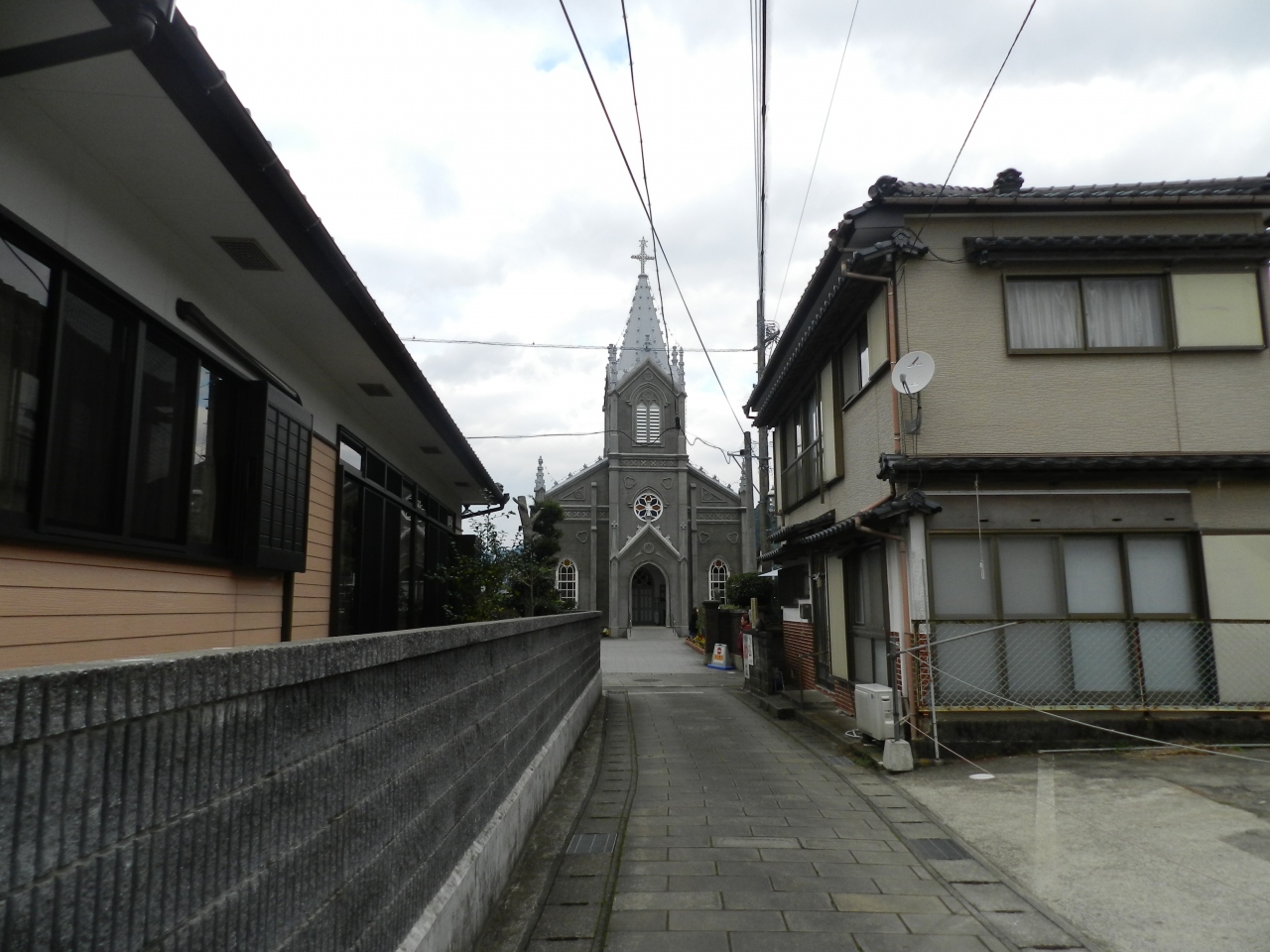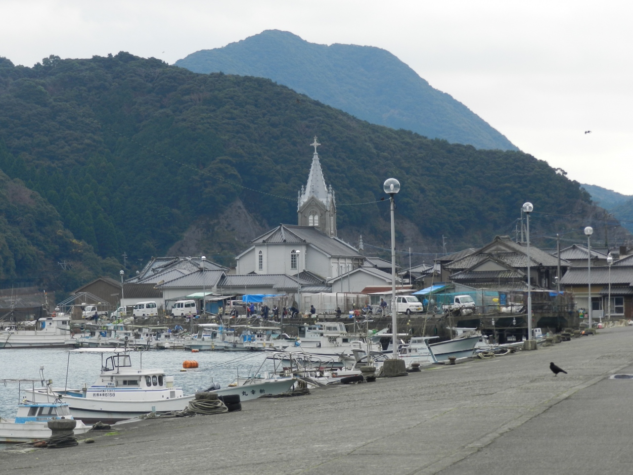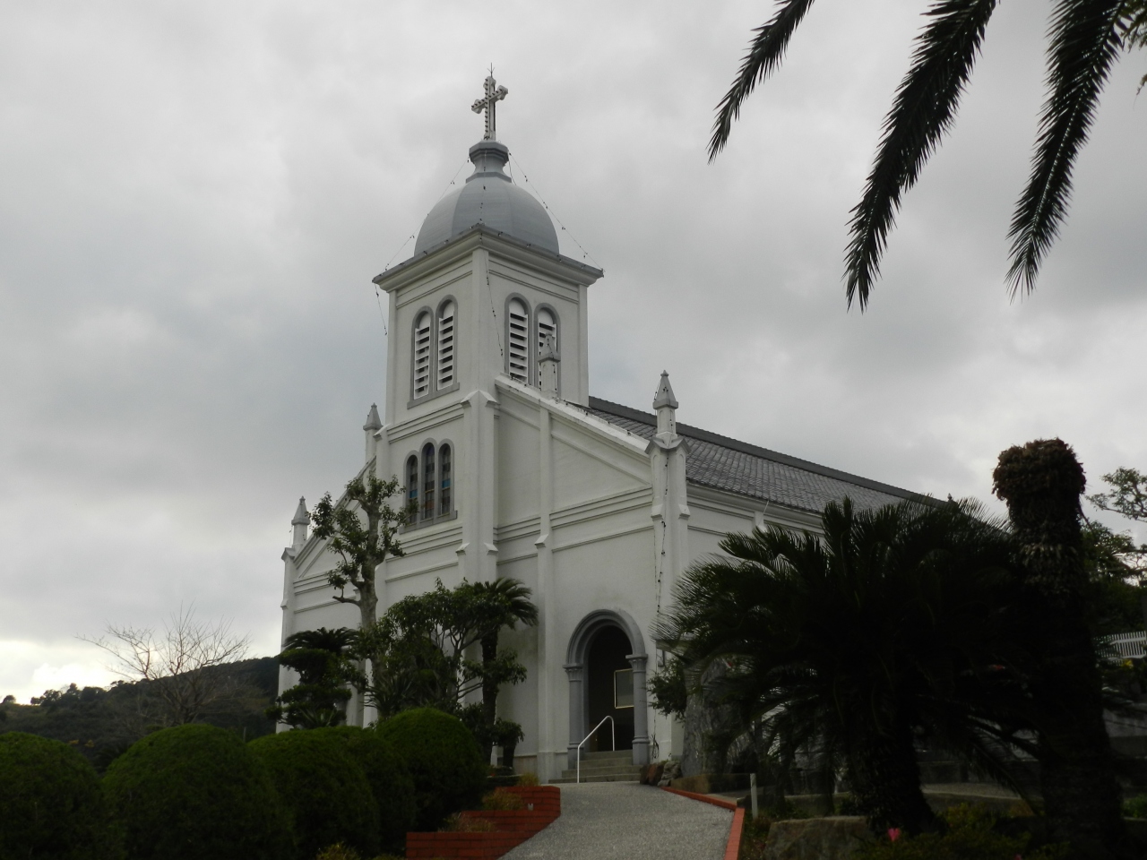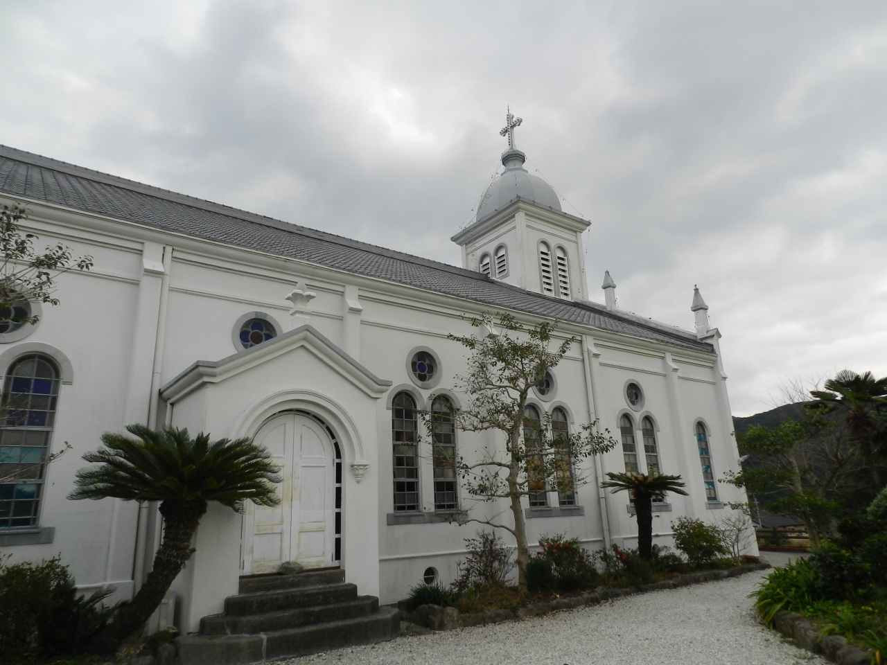 “海の天主堂”と呼ばれるだけあって、海や港町の風景に溶け込んでいます。- 旅行時期