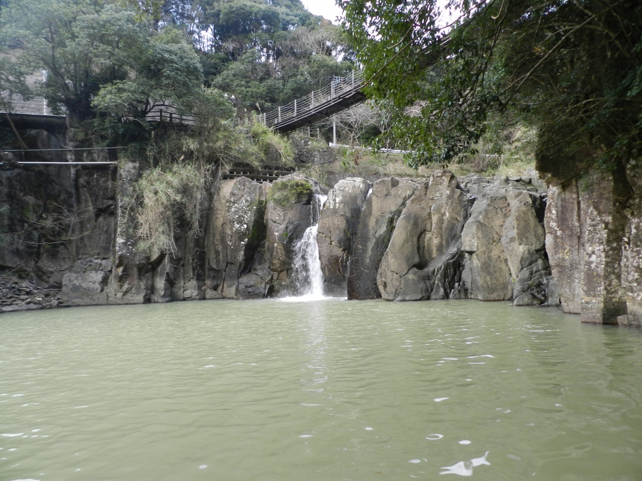 水量の多い時には縦割れになった岩盤を川幅いっぱいに流れているそうなのですが、私が訪れた時は冬だったせいか水量が少な目で、中央の二筋にだけにしか水流がなく少し残念でした。雨が降った後等に訪れると、その名の通り豪快で迫力ある滝が見られると思います。- 旅行時期