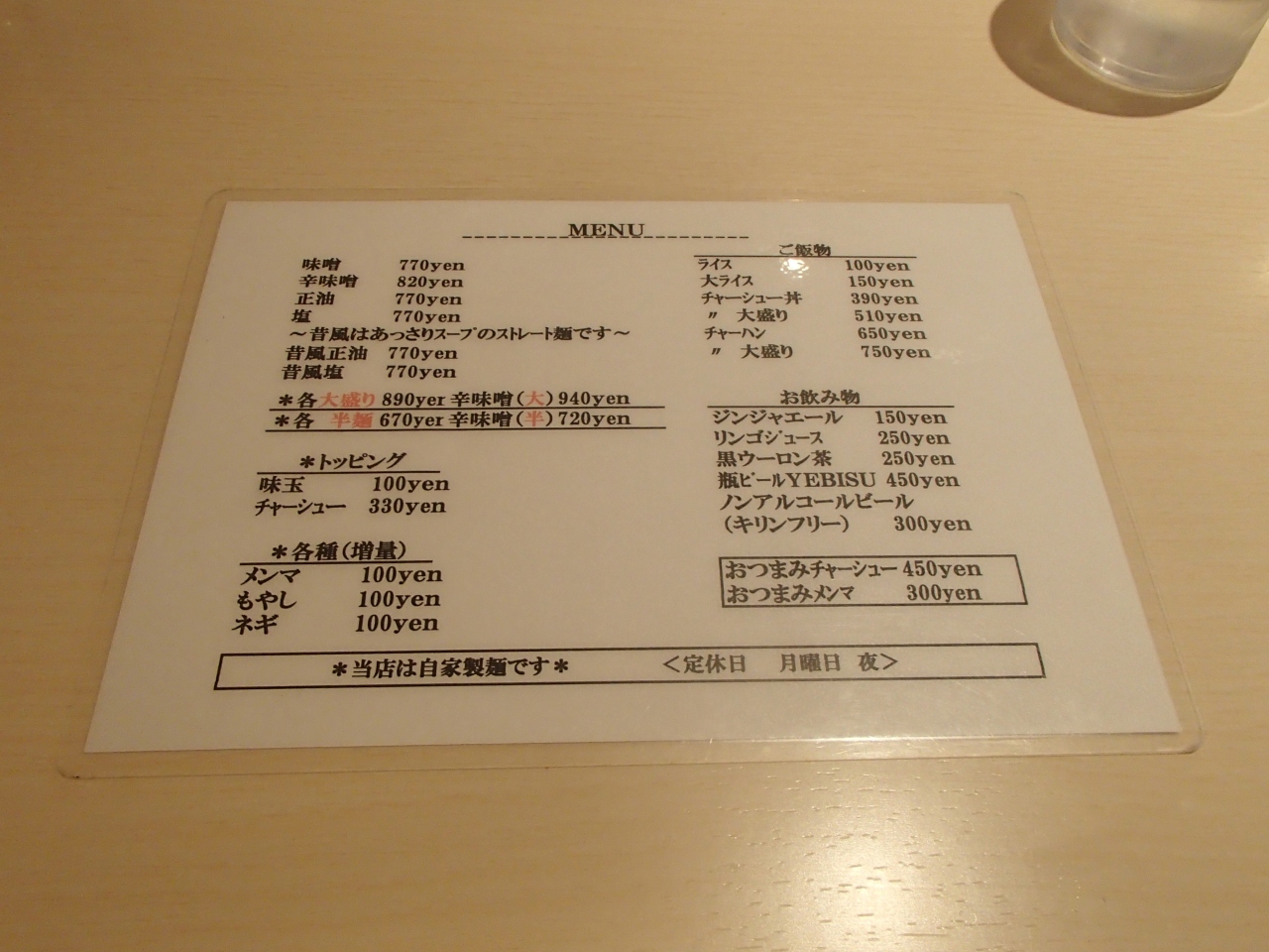 メインのメニューは、北海道らしく味噌ラーメン。奇をてらわずオーソドックスな味だったので、それはそれで美味しくいただきました。価格も770円なので高くも安くもないという印象です。