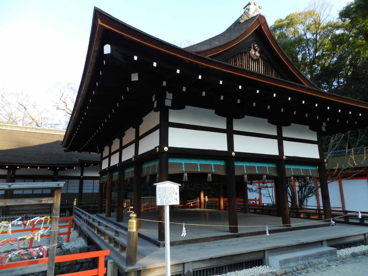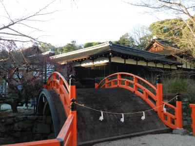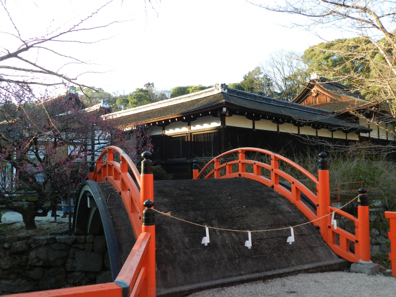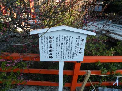 『下鴨神社』の境内、「橋殿」の奥にある「輪橋」の傍らに一本の梅の木があり、尾形光琳が描いた「紅白梅図二曲屏風」のモデルとなったのという「光琳の梅」と呼ばれています。