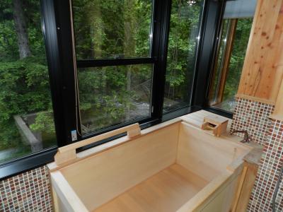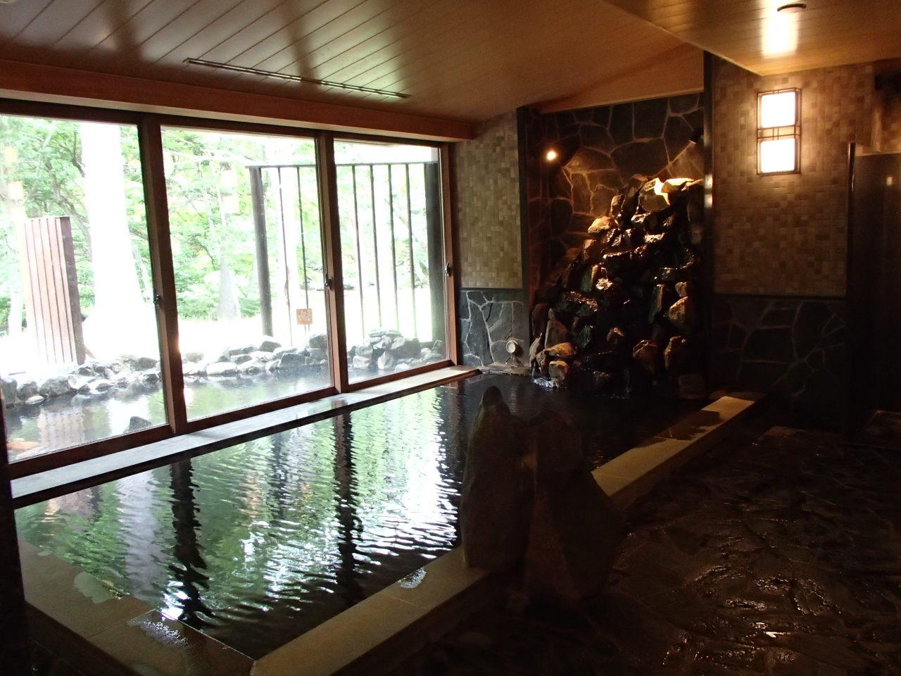 客室内のお風呂は、木製(たぶん檜)バスタブで、温泉が部屋まで引かれていました。浴槽に浸かりながら川の風景も見えて、旅の疲れが癒されました!