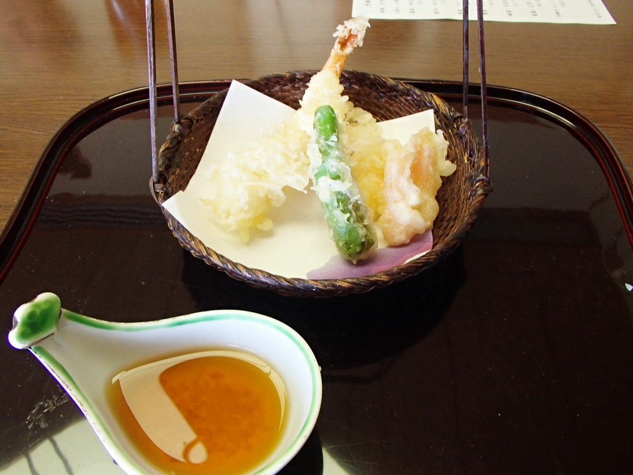wifeは「海老とキスの天ざる蕎麦(1350円)」をチョイス。