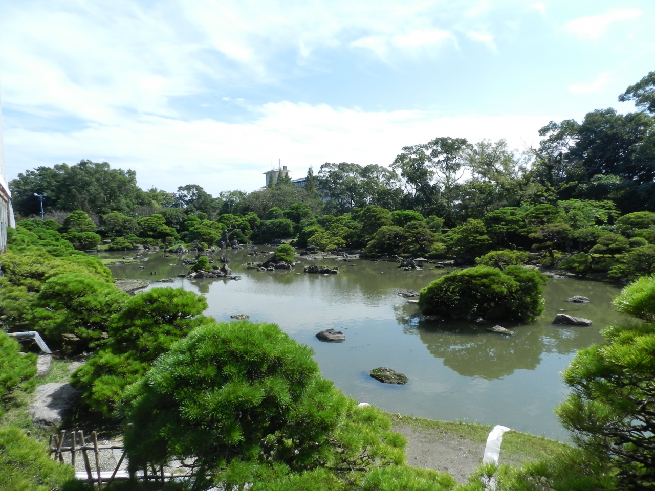 建築物以外のもう一つの見どころは、中央に大きな池を持つ「松濤園(立花氏庭園)」です。