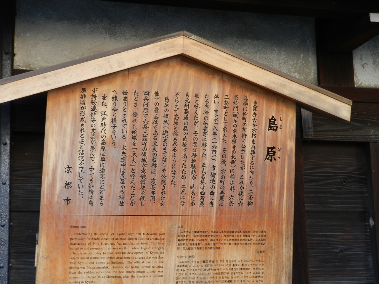 その正面入り口に建つ『島原大門』は、1867年に建てられたもので、京都市の文化財として登録されています。
