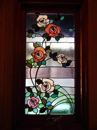 カフェスペースの窓にはステンドグラスがあり、日が射すととても綺麗でした!!