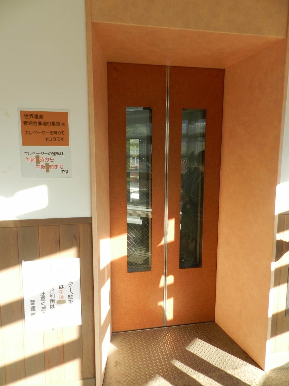 駐車場は集落の上方の高台にあり、集落まではエレベーター&地下通路を使って行くことになります。