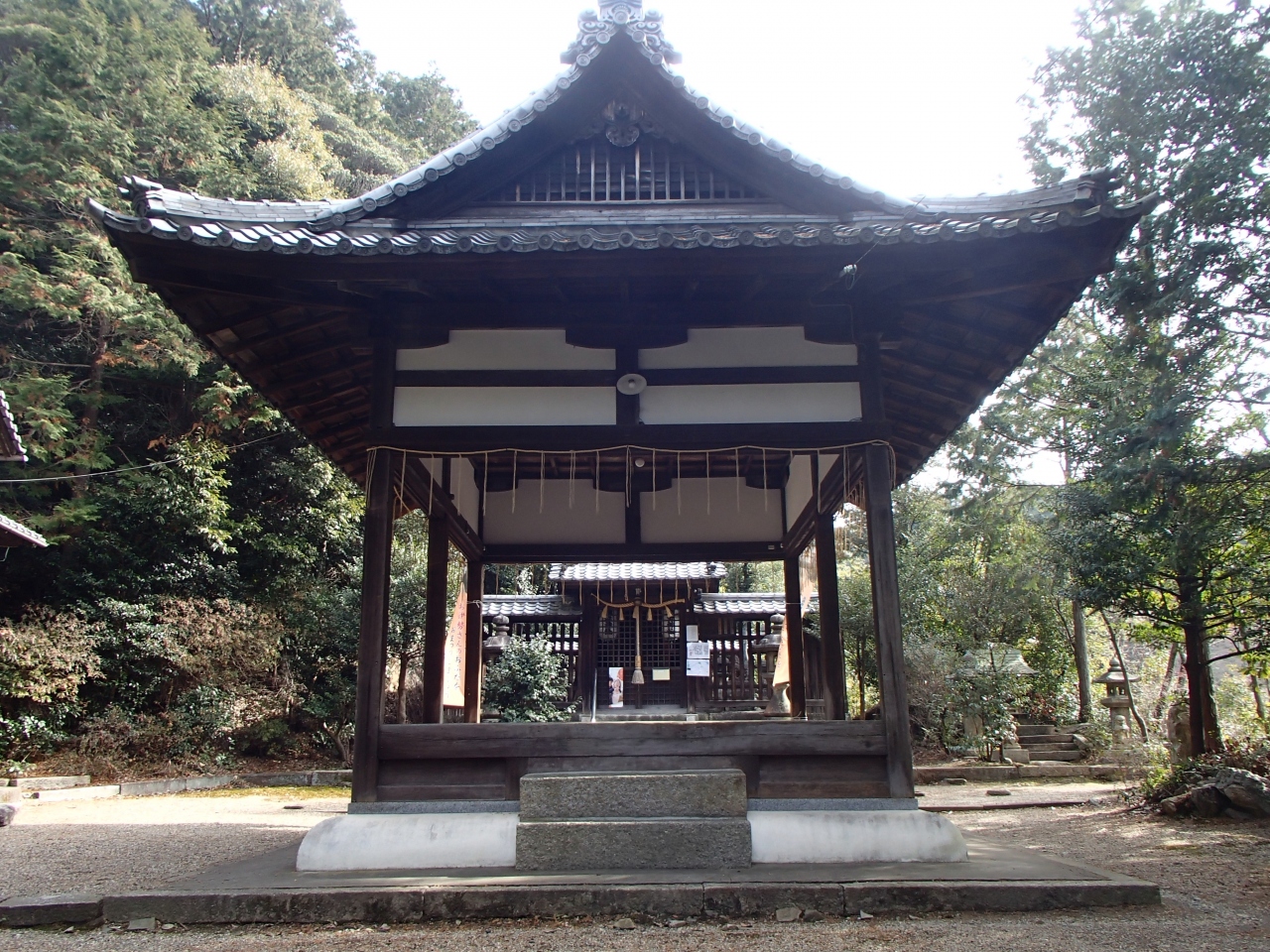 鳥居からかなり急な石段を上がると、舞台がありその奥に本殿があります。