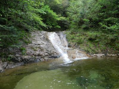 「ナメラ滝」は斜面を滑るように落ちる分岐瀑(落差4~5m)、「二段滝」は切り立った断崖から二段になって落ちる段瀑(落差40m)、「奥の滝」は茶褐色の岩盤を美しく落ちる分岐瀑(落差25m)、いずれの滝も個性的で楽しく滝めぐりをすることができました。