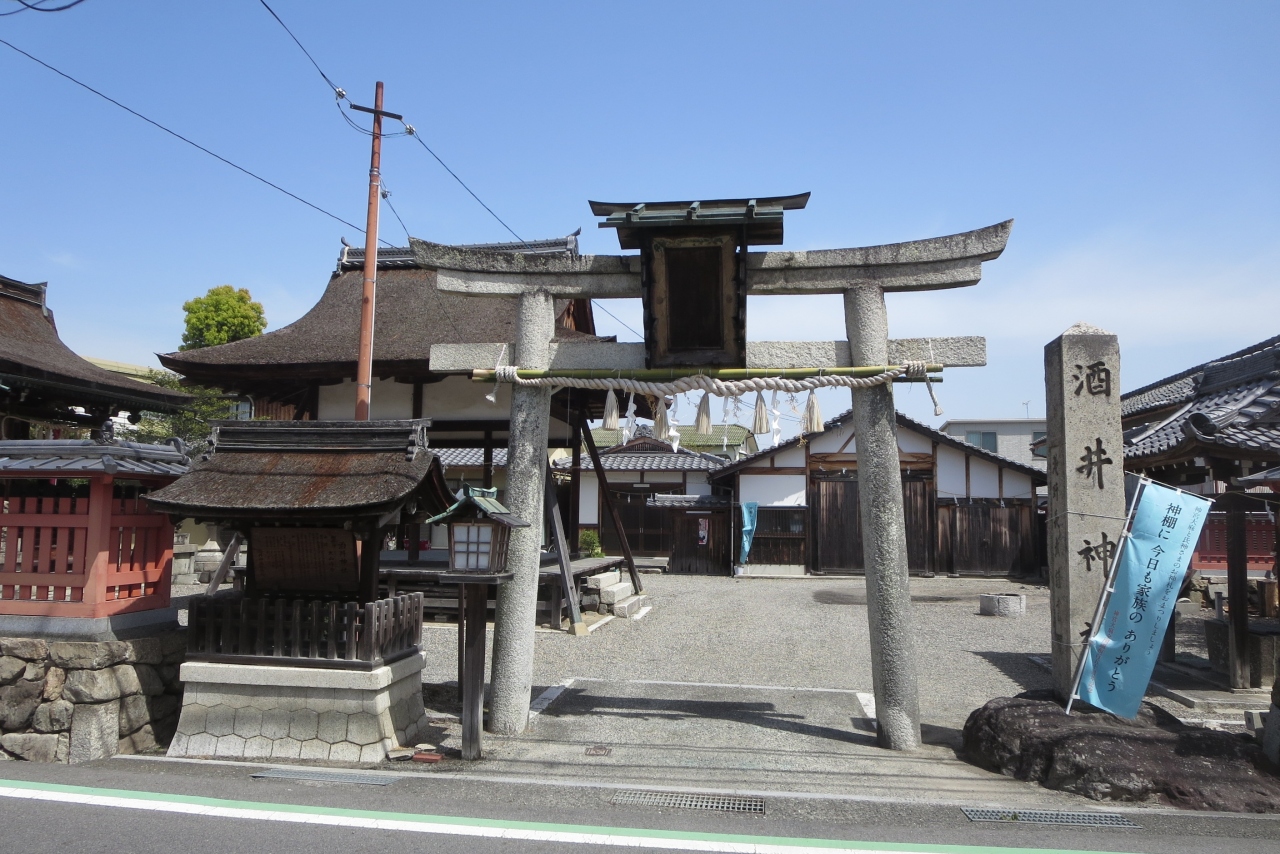 大津市下坂本にあり、道路を隔てて北に酒井神社、南に両社神社があります。