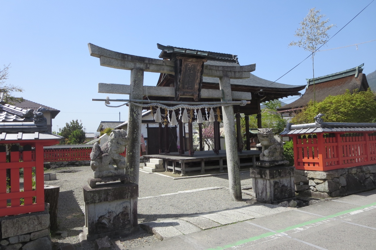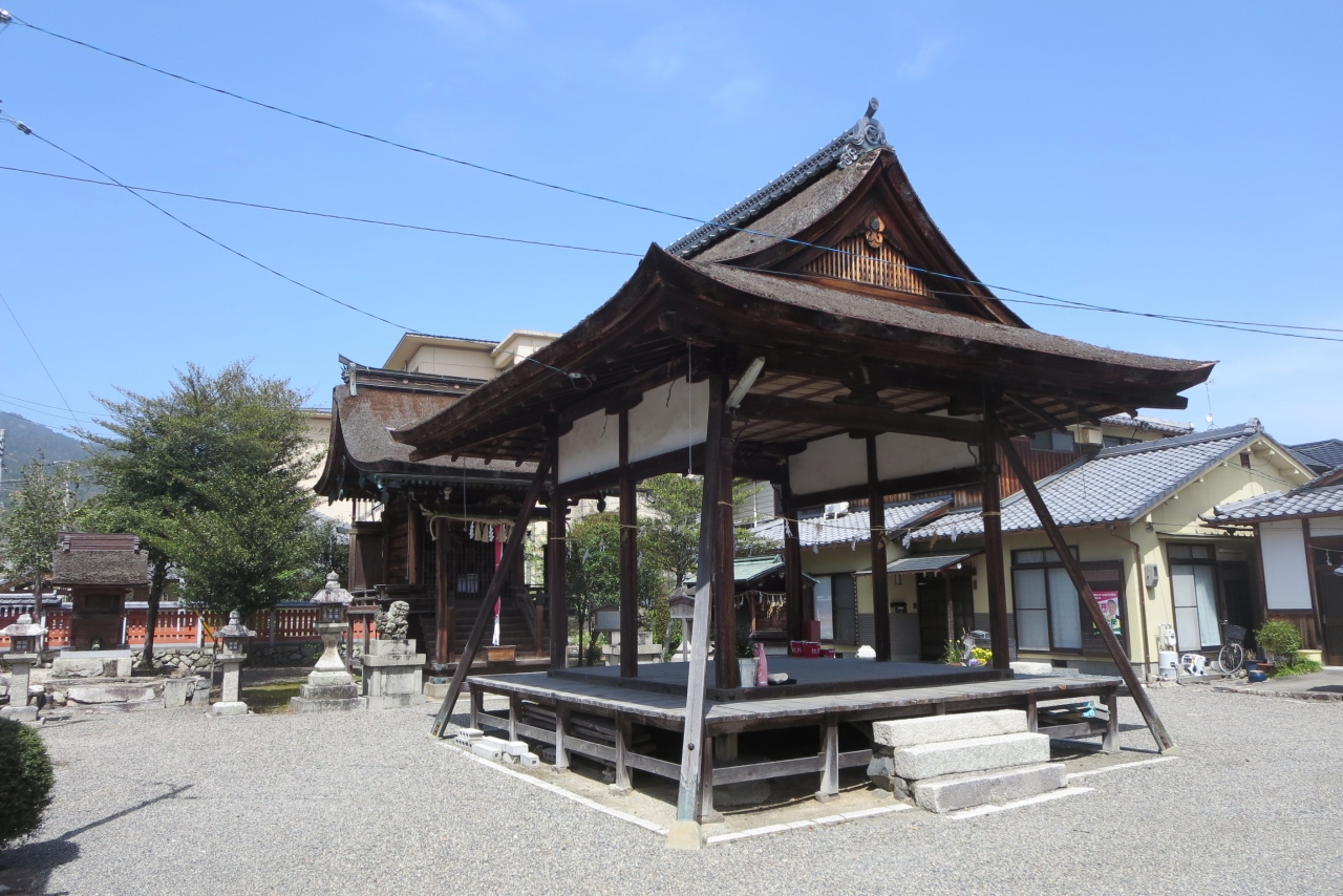 大津市下坂本の道路の南北に向かい合うようにして、北側に酒井神社、南側にこの神社があります。織田信長の比叡山焼き討ちで被害をこうむりますが、江戸時代初期に坂本城主浅野長晟が本殿を再建しました。お正月に行われる五穀豊穣を祈る「おこぼさん」があることで知られています。