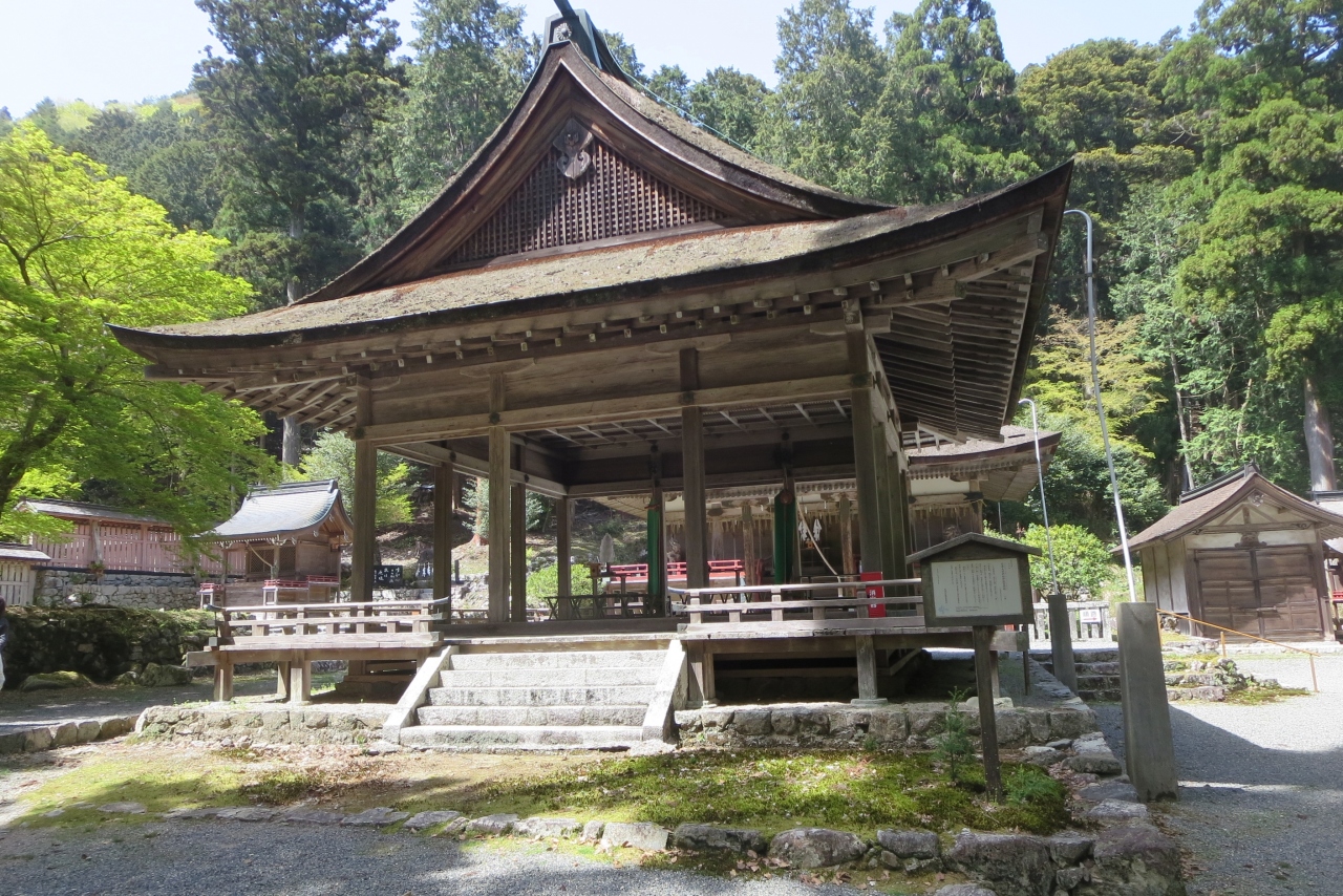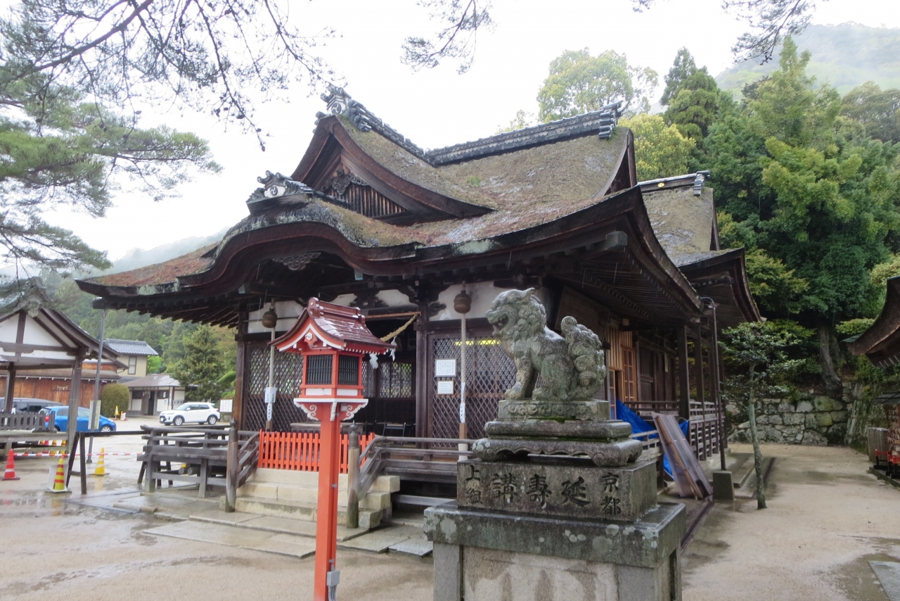 弘仁元年(810年)の創建されたと言われる神社です。下阪本の梵音堂に石からお酒が涌き出したので、この石をご神体として祀るようになったそうです。織田信長の比叡山焼き打ちによって被害をこうむりますが再建されます。現在残る本殿は1620年に社地を移し、その時に広島藩主浅野長晟により建てられたものです。檜皮葺の本殿は立派なんものです。お正月には五穀豊穣を祈って行われる「おこぼさん」が有名です。