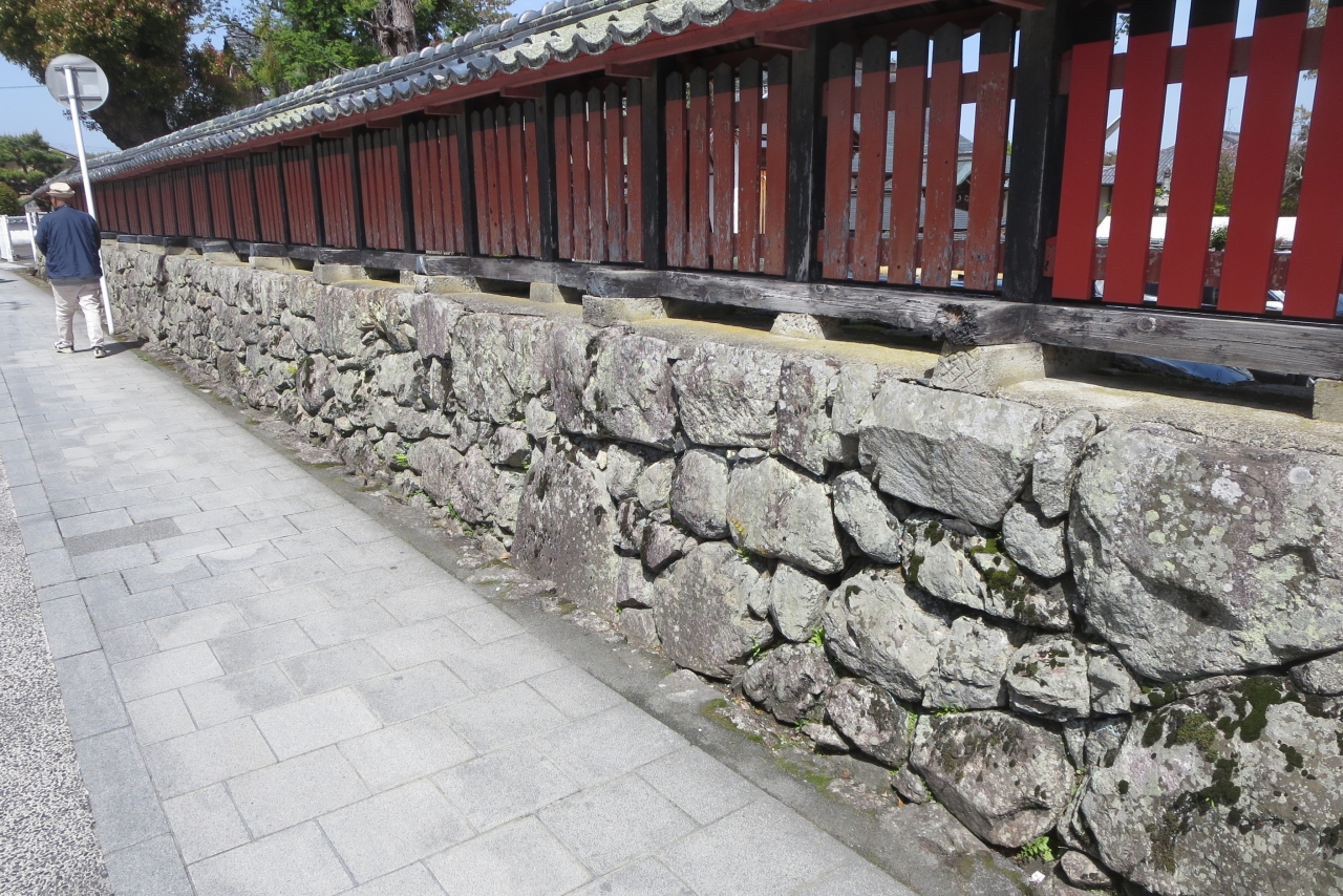全国の城郭の石垣を多く手がけた穴太衆は坂本を本拠地にしていましたので、当然のように坂本の町には穴太衆が手掛けた多くの石垣が残されています。「石の声を聴き、石に従う」という石積み方法です。自然石を巧みに組み合わせて石垣をつくる穴太衆積みですが、織田信長による比叡山焼討ち後に処理を任ぜられた丹羽長秀が石垣を崩そうとしてまったく崩せず、その堅牢さに驚き信長に報告したそうです。信長は安土城築城時に穴太衆を使って強固な城壁づくりを行いました。観光案内所のすぐ上の交差点を曲がるときれいな石垣が見られます。