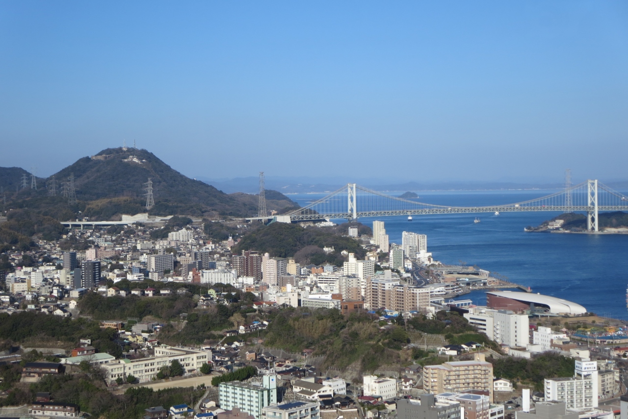 - 下関市街地、対岸の門司港、関門海峡、日本海まで見えました。