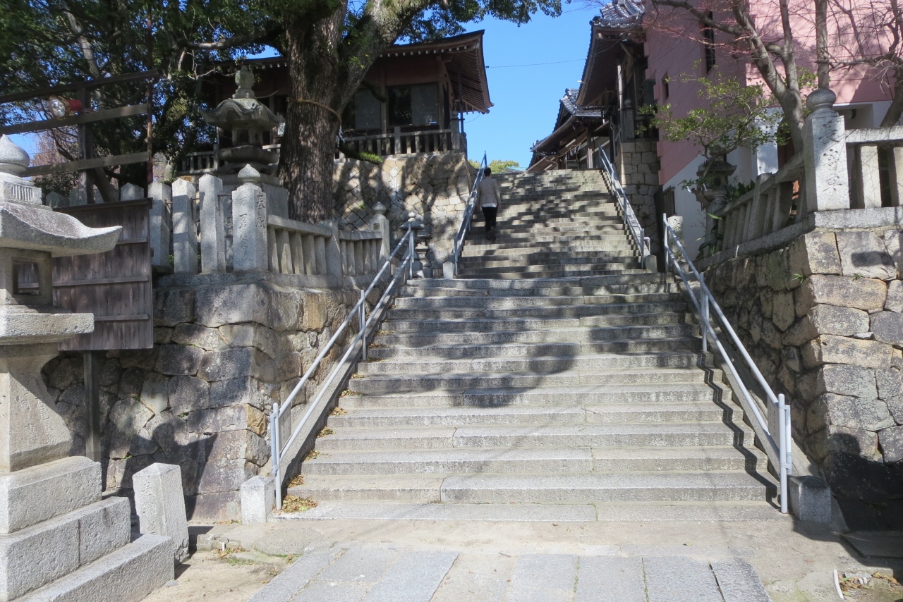 - 厳島神社の境内沿いの細い道を登っていきます。徒歩5分もかかりません。