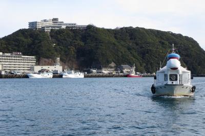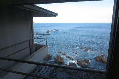 那智勝浦のホテル専用駐車場に車を置き、ホテルの送迎バスで観光桟橋に送ってもらいホテルの専用船で対岸のホテルにアクセスします。専用駐車場からは直接専用バスでホテルに直接アクセスもできますが、一度は船に乗って行きたかったのでこのようにしました。船を降りてそのまま案内に従って、フロントでチェックインしました。日昇館の8階の部屋は和室10畳で、部屋には風呂や太平洋を一望できる縁側のようなところがあります。部屋はちょっと古くて、後で気が付きましたがトイレの水栓が青サビがびっしりこびり付いていたりであまり使いたくない感じでした。さっそく、浴衣に着替えて「忘帰洞」という名物の洞窟風呂に行きましたが、館内を通ってお風呂に行くには5分近く歩く羽目になります。途中わずかに屋外の連絡路があるので、寒かったりしました。その風呂は観光のポイントですのでさすがに大きな洞窟になっています。湯船も非常に大きく太平洋から流れ込む風が温まった身体に気持ちよかったです。その日には、もう一つの温泉「玄武」などにも入りました。こちらも「忘帰洞」と同じ様に太平洋に接する洞窟風呂です。あと二つの風呂は室内にあり、それほど大きくない温泉で特色のないものです。夕食はバイキングでしたが、特色のあるようなものではなくあまり記憶に残るようなものじゃなかったです。料理は何か所かのテーブルに分かれて置かれていたので、食べたいものを探すのにウロウロさせられます。朝食はバイキングのはずでしたが、コロナ感染防止の意味で定食風になっていました。全体的には、太平洋に面し波が押し寄せてきそうな2か所の温泉がウリだけの大規模な温泉ホテルという感は免れず、洞窟風呂が話のタネになるくらいです。
