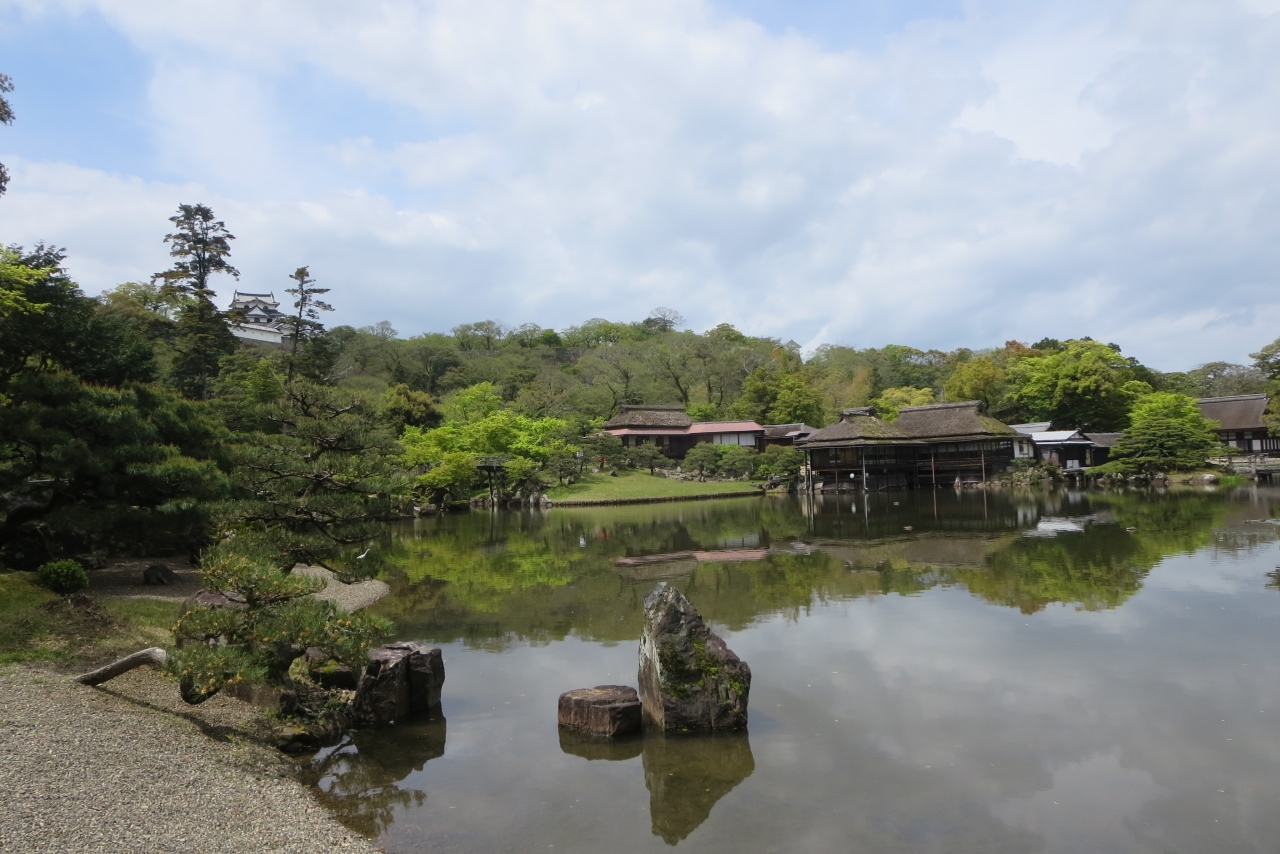 彦根城天守閣の北側にある名勝です。池を中心にした回遊式の庭園です。ここから見る彦根城天守閣の姿が優美で、自分としては最もきれいな景観だと思っています。池にせり出したような臨池閣が建ち、鳳翔台という客殿もあります。ゆっくり庭園を散策できるのでお勧めの観光スポットです。また4代目彦根藩主井伊直興によって造営された楽々園は無料で入場できます。江戸時代後期に建てられた御書院などの数寄屋建築が残されていますし、枯山水の庭も見事です。
