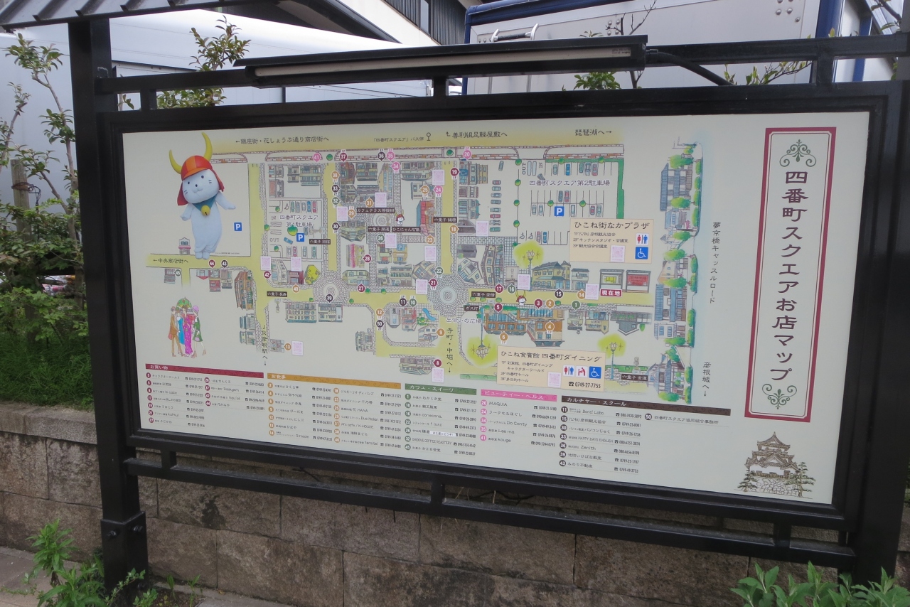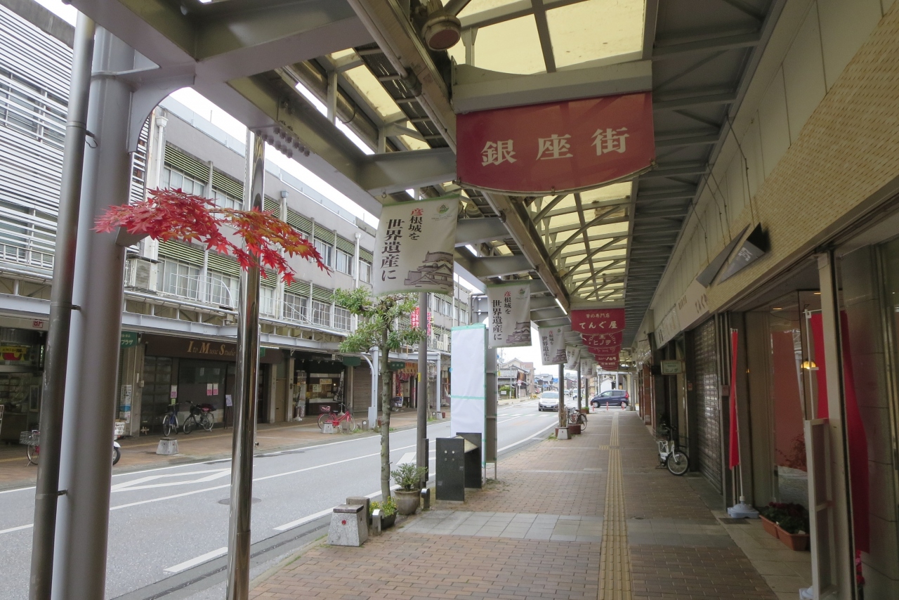 佐和山城が彦根山に移築された頃と言いますから、江戸時代初期にはこの商店街の原型ができていたことになります。ずいぶん長い歴史のある商店街です。河原町・芹町の重要伝統的建造物群保存地域を見学した後、四番町スクエアに行く途中に商店街を散策しました。地方商店街らしくsyった―とおりかと思っていたら、伝統のあるお店は頑張っていらっしゃいました。今回は素通りだけでしたが、和菓子の老舗、日用雑貨を扱うお店、彦根ちゃんぽんのお店、洋食屋さんなど見ながら歩くだけでも楽しいです。