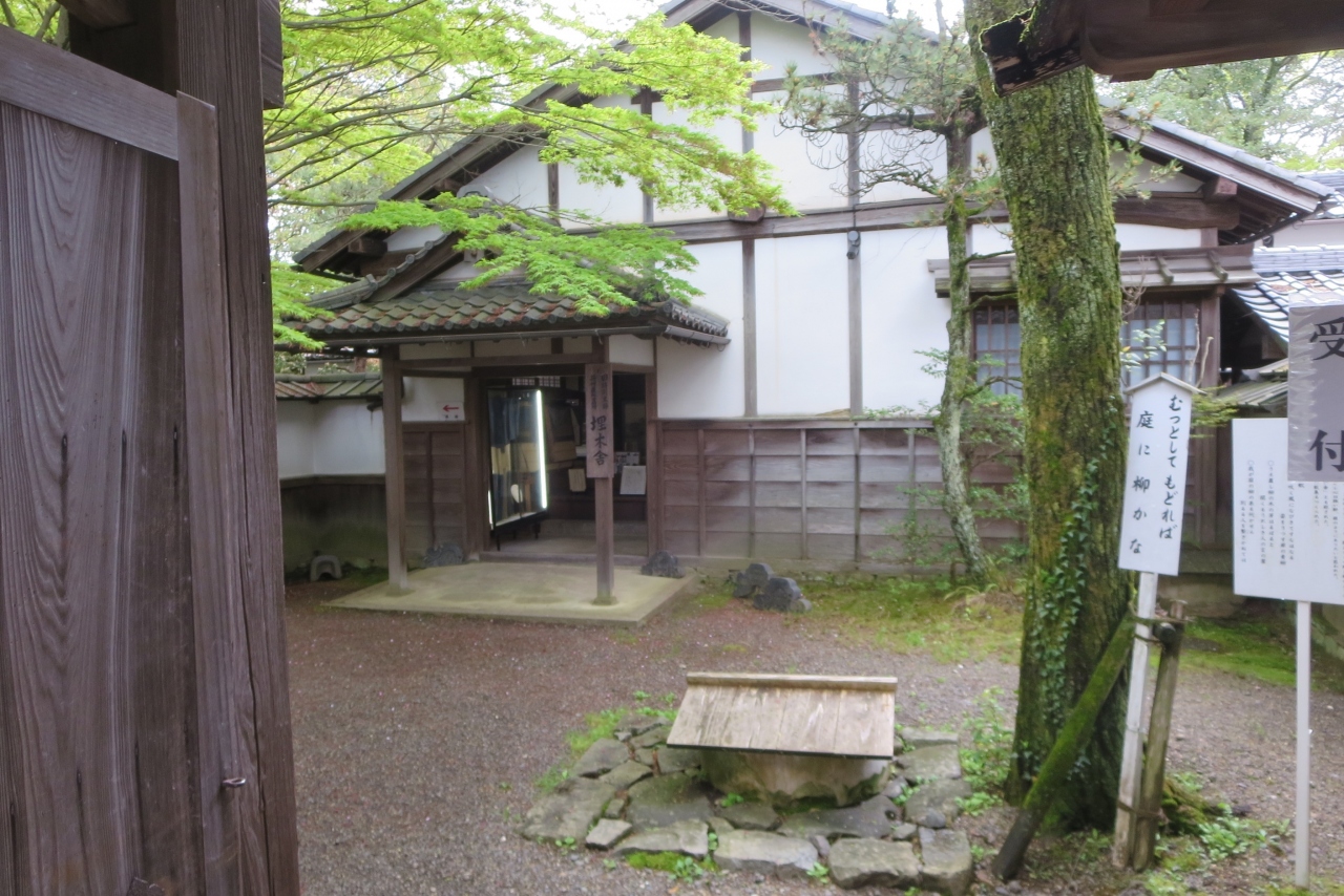 埋木舎は「うもれぎのや」と詠みますが、彦根城の東側中堀に面する所にひっそりと残されています。簡素な武家屋敷で門のところに埋木舎と彫られた碑が立っています。井伊直中の子に生まれ、幼少時に生母を失い、多感な時期に父を亡くした井伊直弼が、17~32歳までここで部屋住みとして暮らした場所です。直弼はお茶を好み、その中で禅の精神を学んだと言われています。自らを埋木にたとえて詠んだ句が残されていますが、その詩にちなみ埋木舎と名が付けられています。