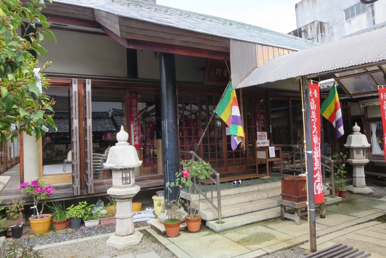 JR彦根駅西口からまっすぐ彦根城を目指して歩き路地を左に入ったところにあります。この寺は日本だただ一つ寝弘法さんが安置されているお寺として知られています。寝弘法さんの頭の中には京都東寺からいただいた舎利が奉納されているそうです。お唱えをしながら寝弘法さんを撫でてお願い事をするとご利益があるといわれています。参拝者が数人おられたので写真撮影を控えました。