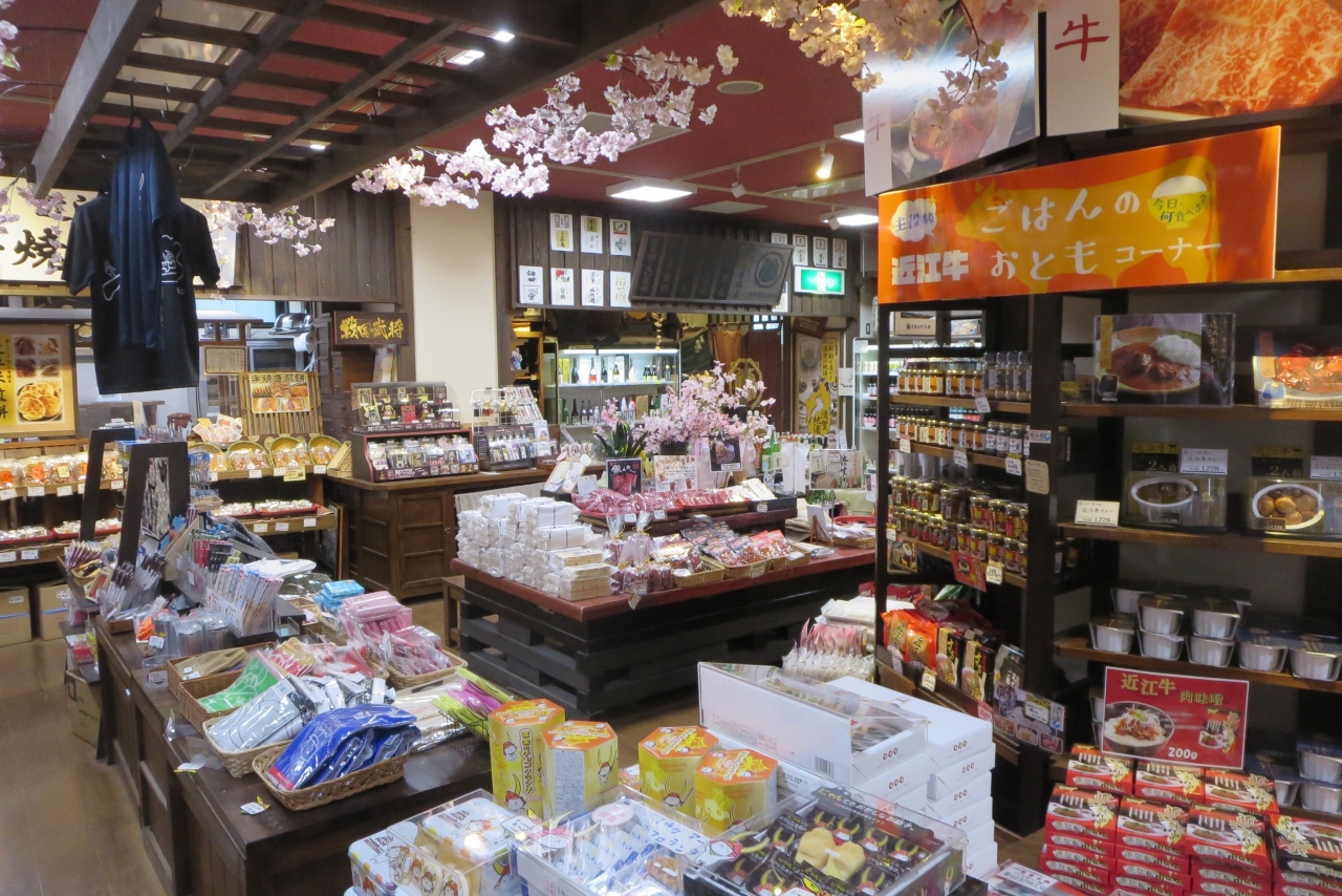 彦根城の観光を終えて立ち寄るにはちょうど良い場所にある土産物店です。他のお店にはなくてもここでしか見かけないようなお土産もあるようです。知人から頼まれていた「ひこにゃん」のグッズ、食品を購入しました。食品は日持ちがするものと思って、近江牛を使用した肉みそを必要分購入しました。友人へのお土産と自宅用です。箱入りのものにして少しでも軽量になるようにしました。