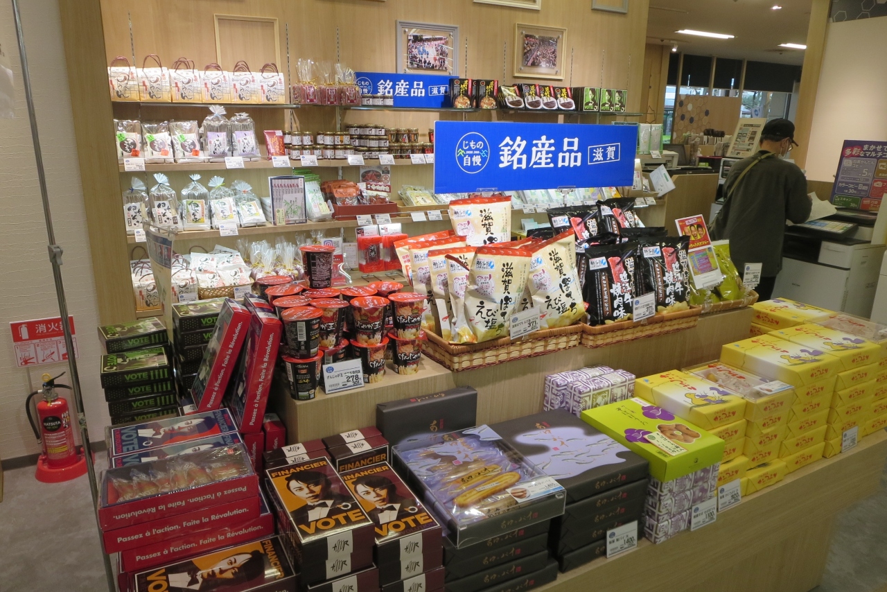 JR彦根駅西口前にある総合ショッピングセンターです。旅行者なので地下の食品売り場と1階のお土産販売コーナーしかお邪魔していません。ちょっと見、地方都市のデパートというところです。地下食料品売り場では、ホテルの宿泊に朝食がなかったので、調理パン、ヨーグルト、サラダ、ドリンク類を購入しました。平均的な価格かなと思います。また1階お土産販売コーナーは彦根観光を終えてJRに乗車する前にお土産を購入しました。たくさんのお土産を持って歩くことなく快適に旅行するためです。そういう意味でも便利な場所にあります。
