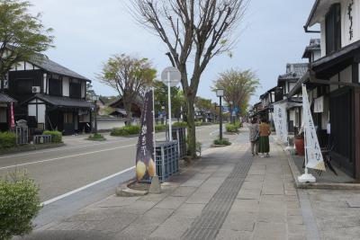 - 白壁と黒い格子の町屋風の建物が多いので城下町の風情が醸し出されています。