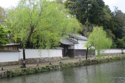西郷家は彦根藩の家老で3500石の家柄です。この屋敷は夢京橋キャッスルロードに行ったときに彦根城の中堀に架かる京橋を渡りいきました。橋を渡り大きく左手に曲がったところにあります。この付近は彦根藩の重臣の屋敷があるところでした。扉が閉じられていて内部は全く見られません。彦根に残っている最大の武家屋敷の中で最も大きな門とい聞いていたので楽しみにしていましたが残念です。建物の上部は白漆喰で塗られ、下部は板張りになっています。さすが家老の屋敷で重厚な感じがあります。