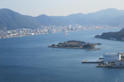 最上階(30階)の展望台は高さ143mあります。28階まで階段で下りて下りのエレベーターに乗ります。たった2階下りただけでもこんない景色が変わるのかと思いました。最上階からの眺めは、瀬戸内海(周防灘)、関門海峡、巌流島、下関市街地、対岸の門司港レトロ、北九州市の山々、日本海(響灘)の本州最西端までがしっかり見えます。雄大な360度のパノラマがを楽しむことができます。