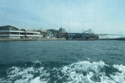 - はいからっと横町の観覧車、海峡ゆめタワー、関門橋などが船方見えます。