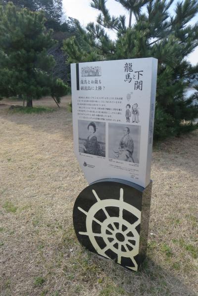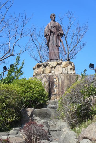 下関の桜の名所として知られている公園です。日和山というので海の景色がよく見えると想像して出かけましたが、樹々の枝葉に邪魔されてよく見えません。おられた地元の人が「是でもずいぶん剪定された」と言われていましたが残念な結果になりました。公園内には、没後90年を記念した高杉晋作の陶像が関門海峡に目をやっていました。