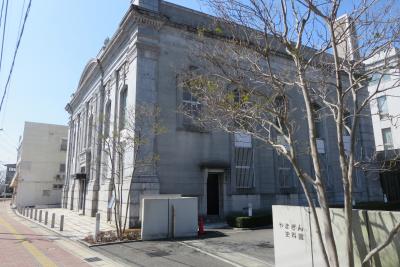 東京駅を設計した辰野金吾の弟子で、日本建築士会初代会長を務めた建築家長野宇平治の設計監督のもとに1920年に三井銀行下関支店として建設されました。1933年に山口銀行の前身となる百十銀行の本店となりました。1944年山口銀行の創立から新本店ができる間は本店として使用されてきた建物です。建物の外観は重厚感のあるルネサンス様式を取り入れたもので左右対称に造られています。御影石が使われた外観には彫刻がある本格的な古典主義建築です。内部は銀行らしくロビーも広くカウンターや金庫も残されています。2階には当時の頭取室や応接室などもあります。