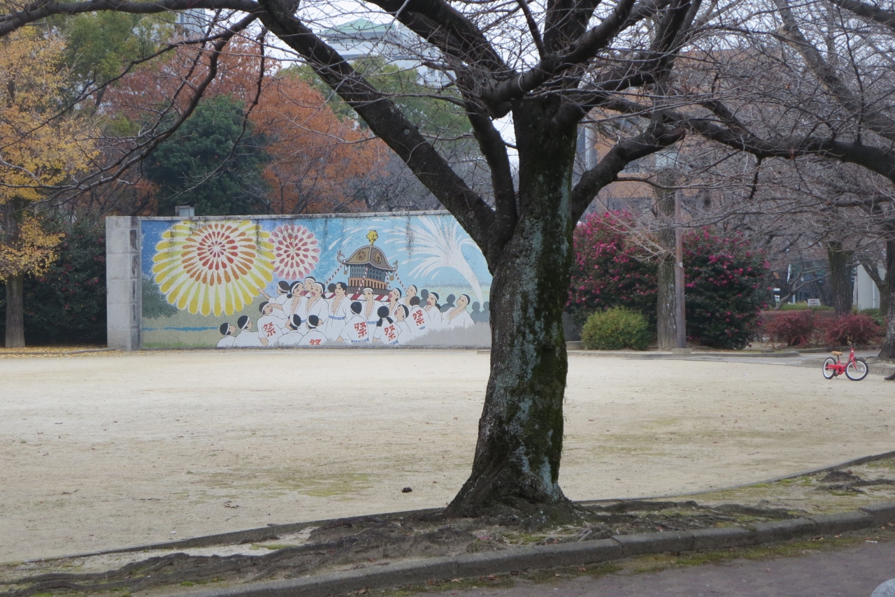 - ごくありふれた公園です。久留米水の祭典のタイル絵が特徴になるくらいです。
