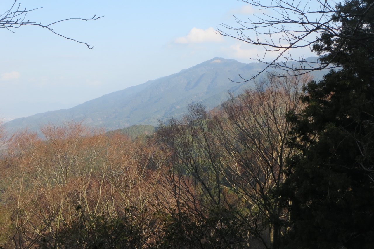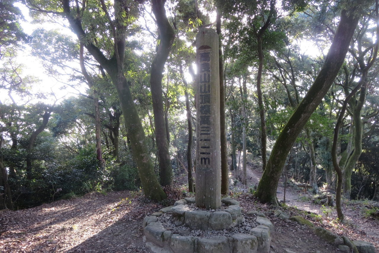 高良大社にお参りに行ったので、裏山にあたる高良山(標高312m)まで登ることにしました。急に思い立ったので、足元の準備がないので、耳納スカイラインの舗装路を上ることにしました。登山としては舗装道がほとんどなので面白くないのですが仕方ありません。舗装道を1㎞ほどでしょうか登り詰めると、少し下り始めます。そこに「森林つつじ園」の標識があるので、耳納スカイラインと別れて山に入っていきます。約5分ほど登ると山頂です。