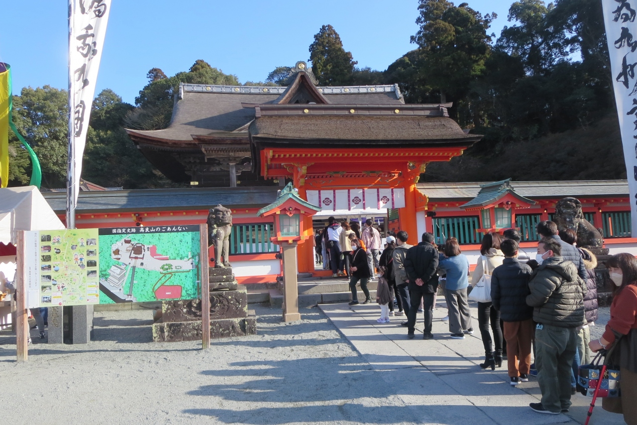 成人の日に参拝しましたが、神社近くの駐車場は空くのを待つ車で渋滞していました。運よくバス駐車場にスペースがあったので車を駐めました。ここからでも本殿まで120段くらいのの急な石段を上らなくてはなりません。本殿前には参拝順を待つ人が長い列を作っていました。さすがに筑後国一の宮の高良大社です。参拝者の数も半端ないです。辛抱強く待って、厄除け、延命長寿、福徳円満、交通安全など、生活全体をお守りいただけるようお願いいたしました。