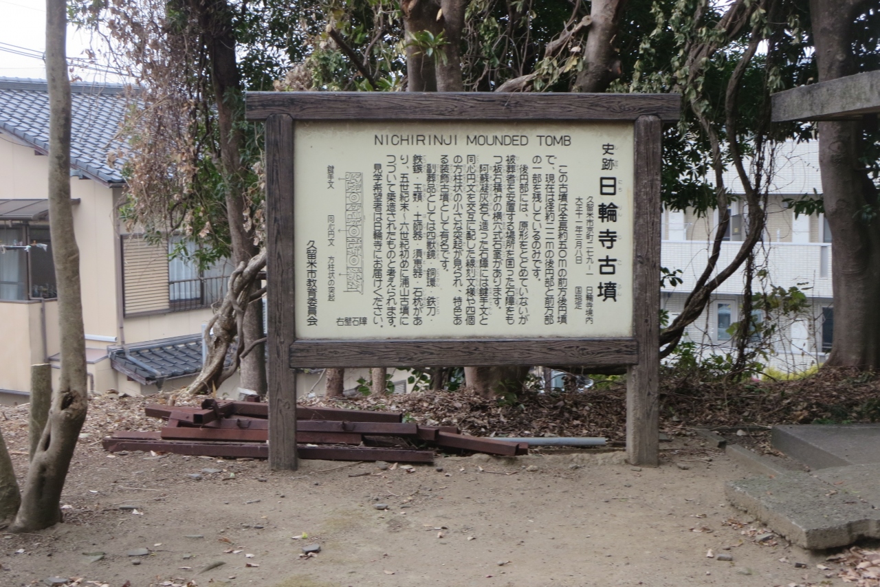 JR久留米駅西口から徒歩5分もかからないところにある日輪寺というお寺の境内にある古墳です。当時は家屋も少なくきっと周辺地域や筑後川を見下ろすことができる場所に古墳を作りその力を誇示したのでしょう。説明では前方後円墳と書かれていますが、後円部分だけが残っています。石室内を見学することができなかったのですが、イベントで石室内を見ることができることがあるそうです。