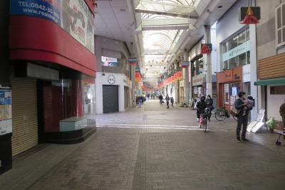 福岡県久留米市の西鉄久留米駅から六ツ門までの間には7つの商店街があります。歩行者それほど気にしなくて歩いているのですが、こんない頻繁に商店街の名が変わるものかと驚きました。その7つは、東から西鉄駅前、ベルモール、東町明治通り、一番街、西栄通り、あけぼの、六ツ門あけぼの、六ツ門商店街です。、アーケードで覆われたところがほとんどですので雨が降っても安心です。目立つほどではないですがシャッターを閉めたお店もちらほらありました。通行人の数が多くなく、活気が少ないのが残念でした。
