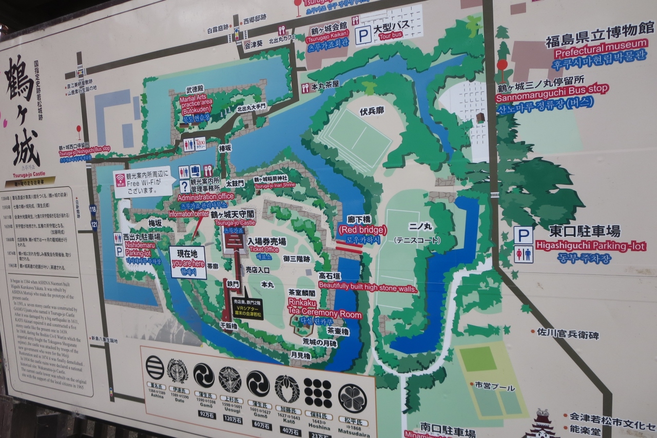現在鶴ヶ城の長寿命化工事中で令和5年3月まで天守閣に入場できずに残念でした。仕方なく二の丸公園→鶴ヶ城廊下橋→鶴ヶ城天守閣の経路で散策をしました。会津藩は将軍家と非常に密接な関係があり、戊辰戦争での激戦地となった歴史を確認しました。この城が燃えるのを見た(見誤った)白虎隊が飯盛山で自刃したのはあまりに悲しい歴史で平和な世に中に感謝しました。約50年前に天守閣に登ったのですが、今回は登れずに非常に残念でいた。