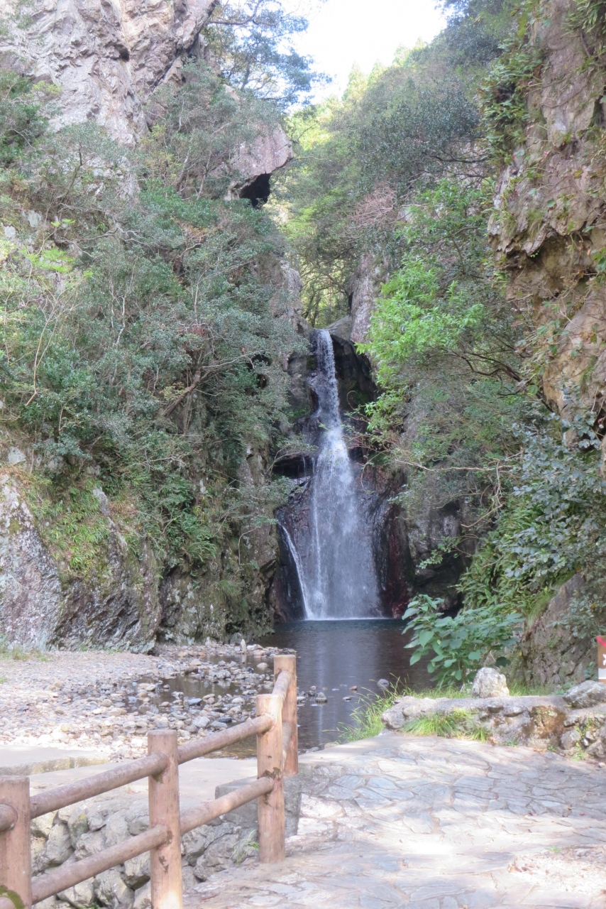 - 岩の谷間のようなところから流れ落ちる滝は大分百景になっています。