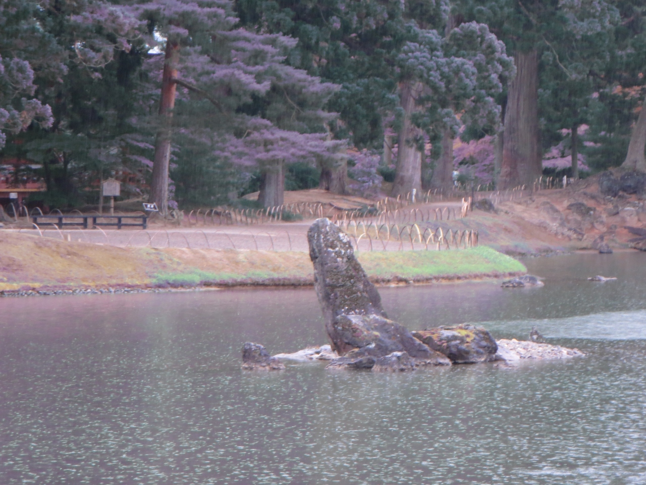 平泉は何度も訪れたことがありますが、今回は初めて毛越寺を拝観しました。山門をくぐると初めに目に入ってくるのは、浄土式庭園で広い大泉が池があります。池の淵には砂浜、立石があり趣があります。池の周辺を巡りながら色々な角度から庭園の風景を楽しめました。往時の建物が残っていたら、どれほど壮観だっただろうと思われます。