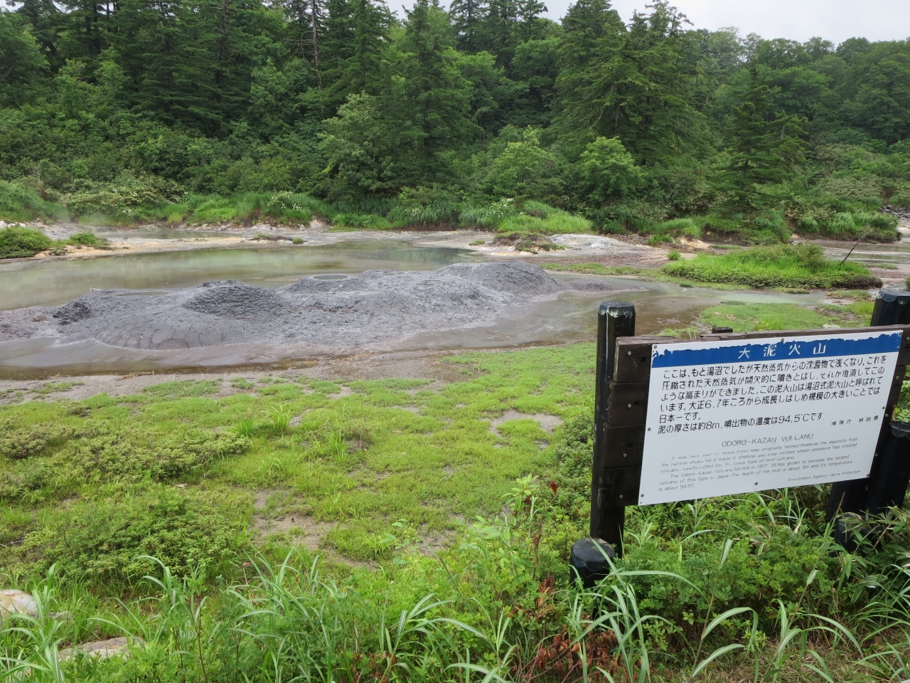 八幡平まで行ったので、頂上から秋田県側に足を伸ばして後生掛温泉まで行きました。名前はよく知っている温泉地ですが、宿泊はしなくて自然探勝路の散策を楽しもうというのが目的です。温泉の入口に車を停めさせてもらって、さっそく自然探勝路に向かいます。たまたま出会った温泉のスタッフに「クマの出没はないです?」と尋ねたら、18L缶を叩いて音を立ててくれました。本当にどこまで効果があるのか知れませんが、話し声が聞こえるようにして自然探勝路に入ります。この温泉の源泉になる湯沼、オナメ(妾の意)とモトメ(本妻の意)はグツグツと音を立てて湯が噴き出しています。約50分くらいで元に戻って来られますが、説明板などがあまりないので分かりにくいです。