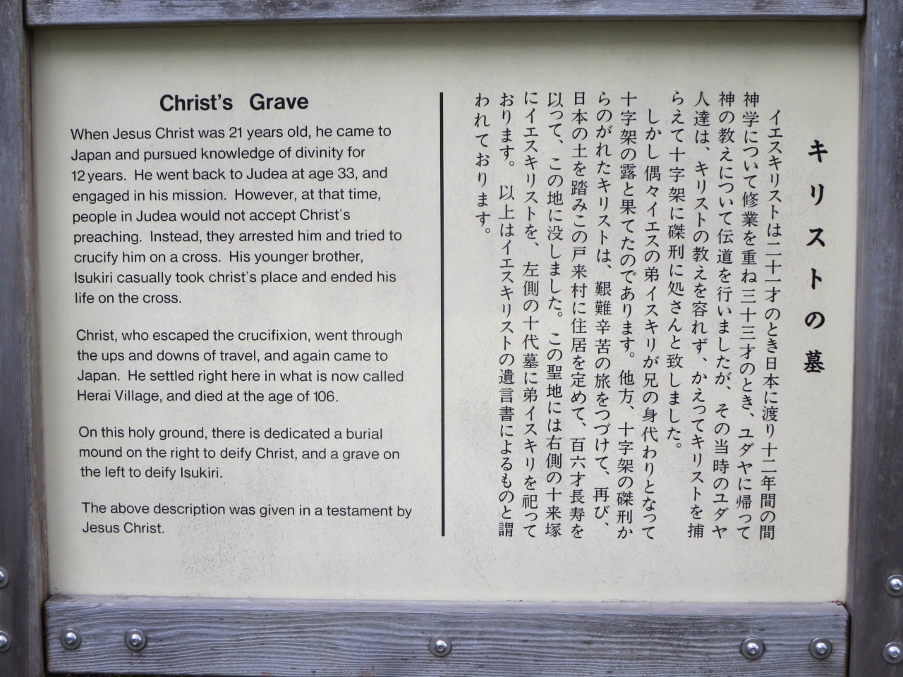 新郷村にあるキリストの墓。何ぜこんな所にあるのかと思って立ち寄りました。