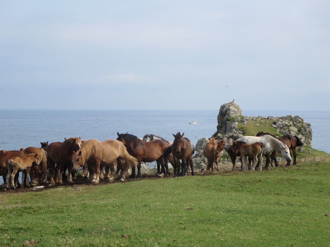 - 最果ての感じがする景観の中に白亜の灯台と寒立馬という野生馬が素晴らしい景色を作っていました。