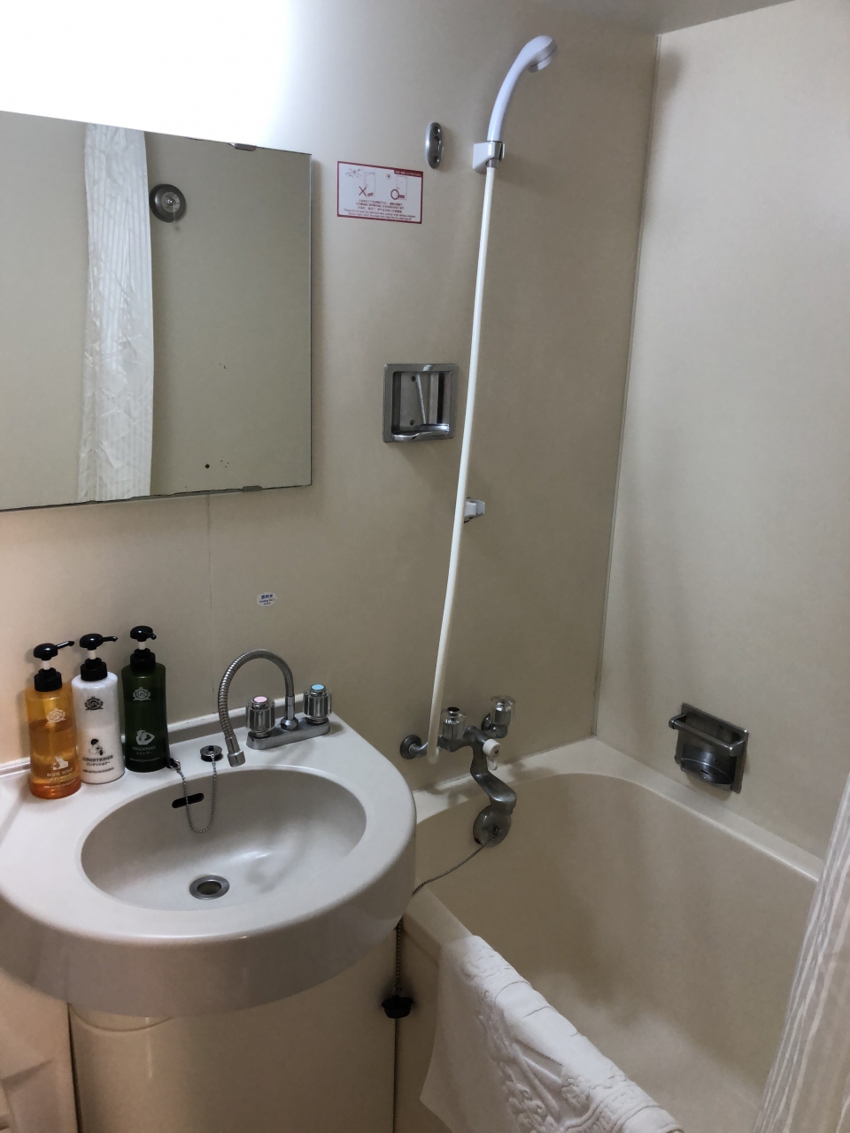 - ビジネスホテルのユニットバスのようです。ただ浴槽は足を少し伸ばせる程度の長さはあります。