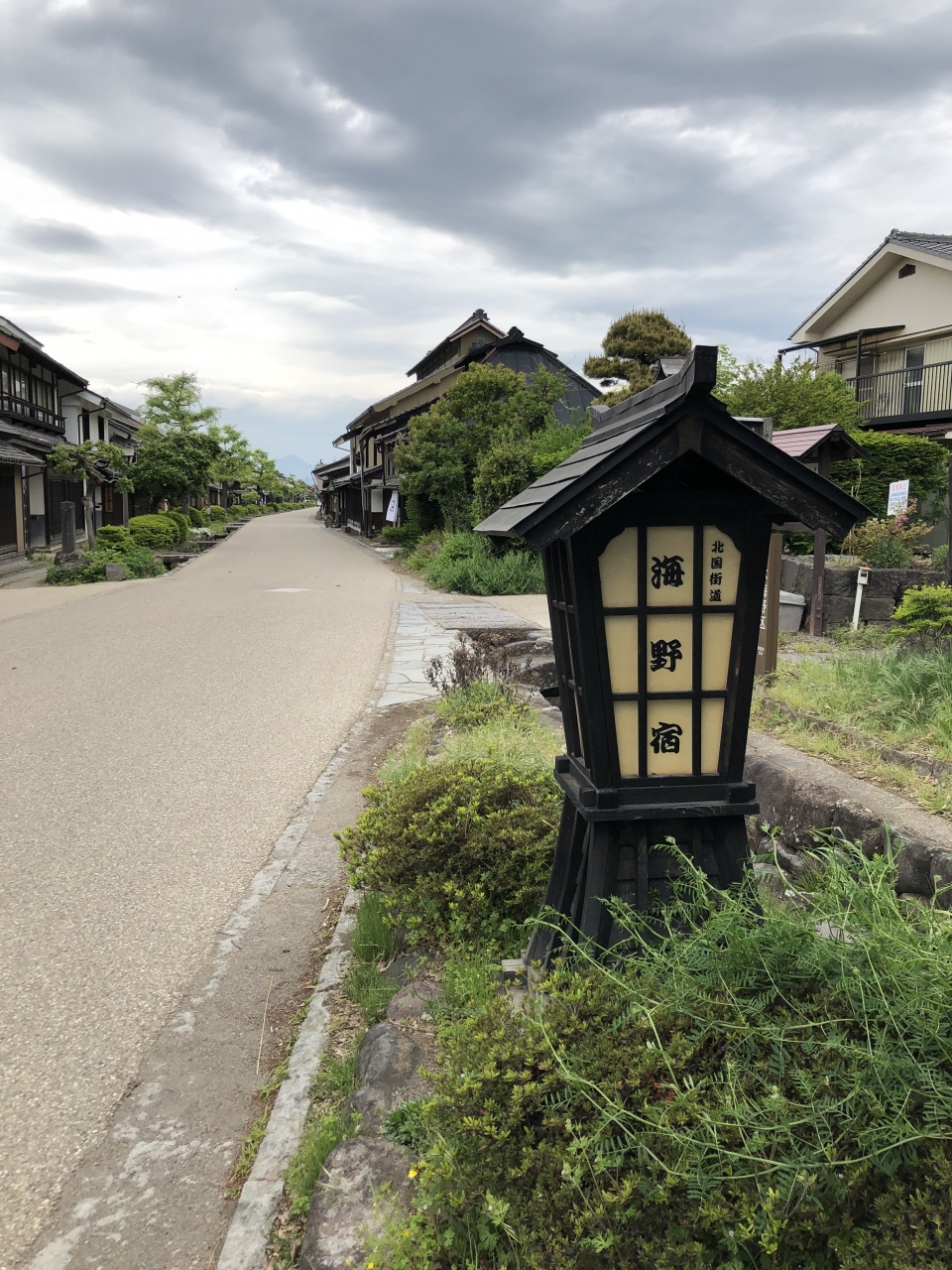 海野宿東側の白鳥神社横にある小型車専用無料駐車場(30台くらい収容できそう)に駐車し宿場を歩きました。GWを過ぎた時期ですが、ほとんど観光客はいません。ここは北国街道の宿場で真田氏の祖先である滋野氏、海野氏の領地でした。町並みは綺麗に整備されていて重要伝統的建造物保存地区で日本の道100選に選ばれた書かれていました。町家には隣家からの延焼を防ぐための「うだつ」が設けられて、道の端には小さな水路がありますが、これは馬の飲み水に利用されていたそうです。また馬の塩舐め場というところもあって宿場町だなと感じました。水路と海野格子が宿場らしい景観を作っていました。