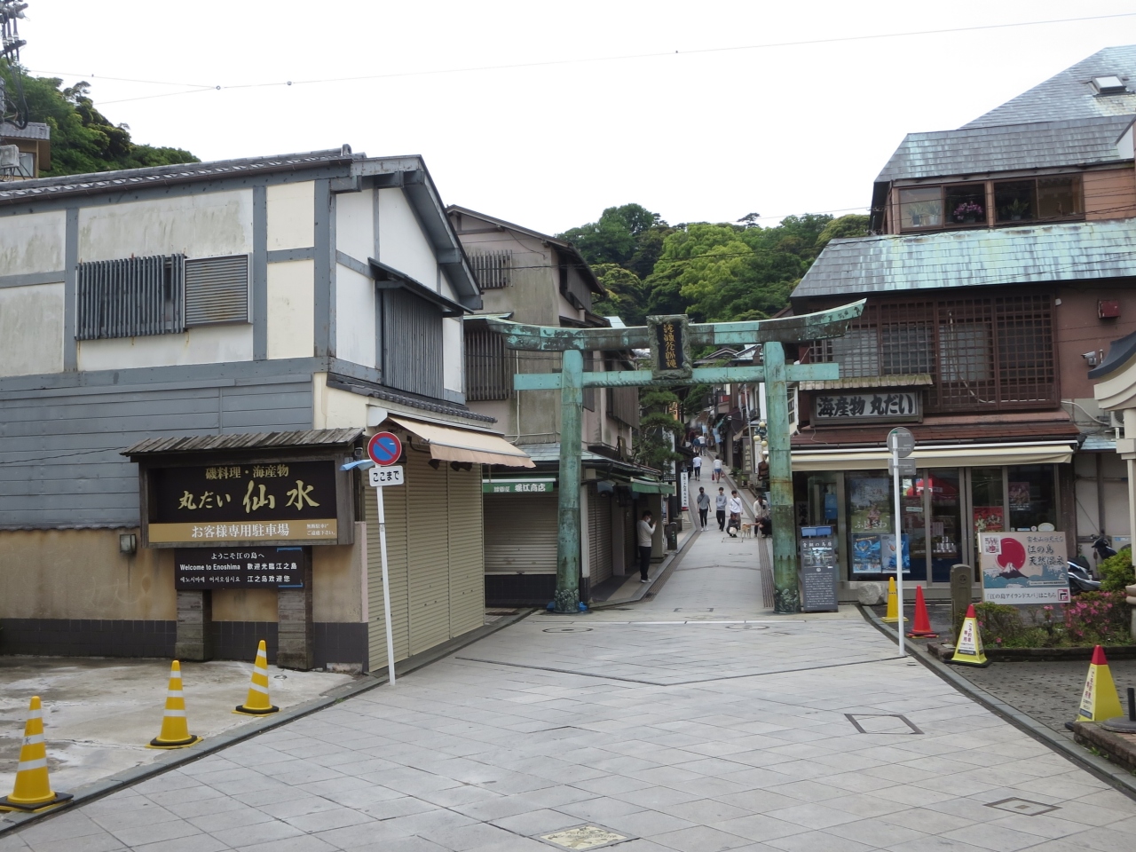 江の島の入口にある青銅の鳥居から端心門・朱の鳥居までの区間にあります。江島神社までの参道に行くには必ずここを通ることになる歴史ある商店街です。通りの両側には旅館、飲食店、土産物店などが並んでいて、多くの観光客で賑わう通りです。