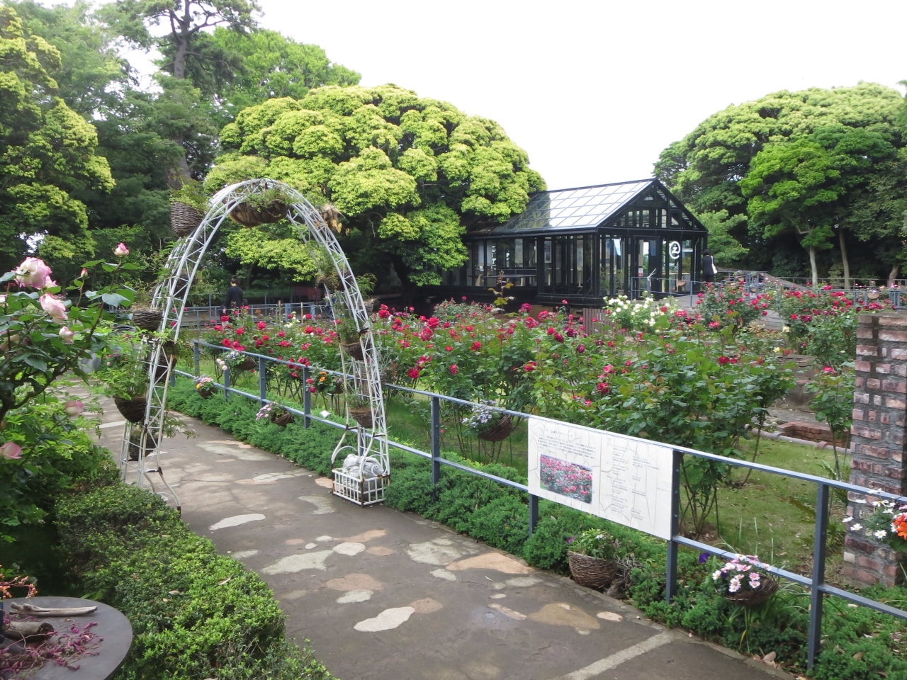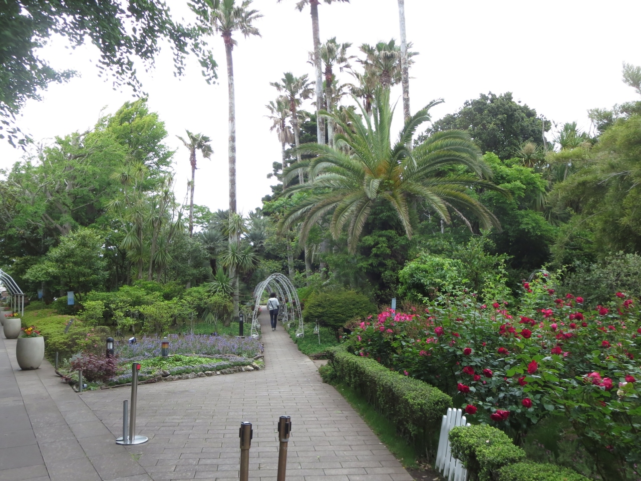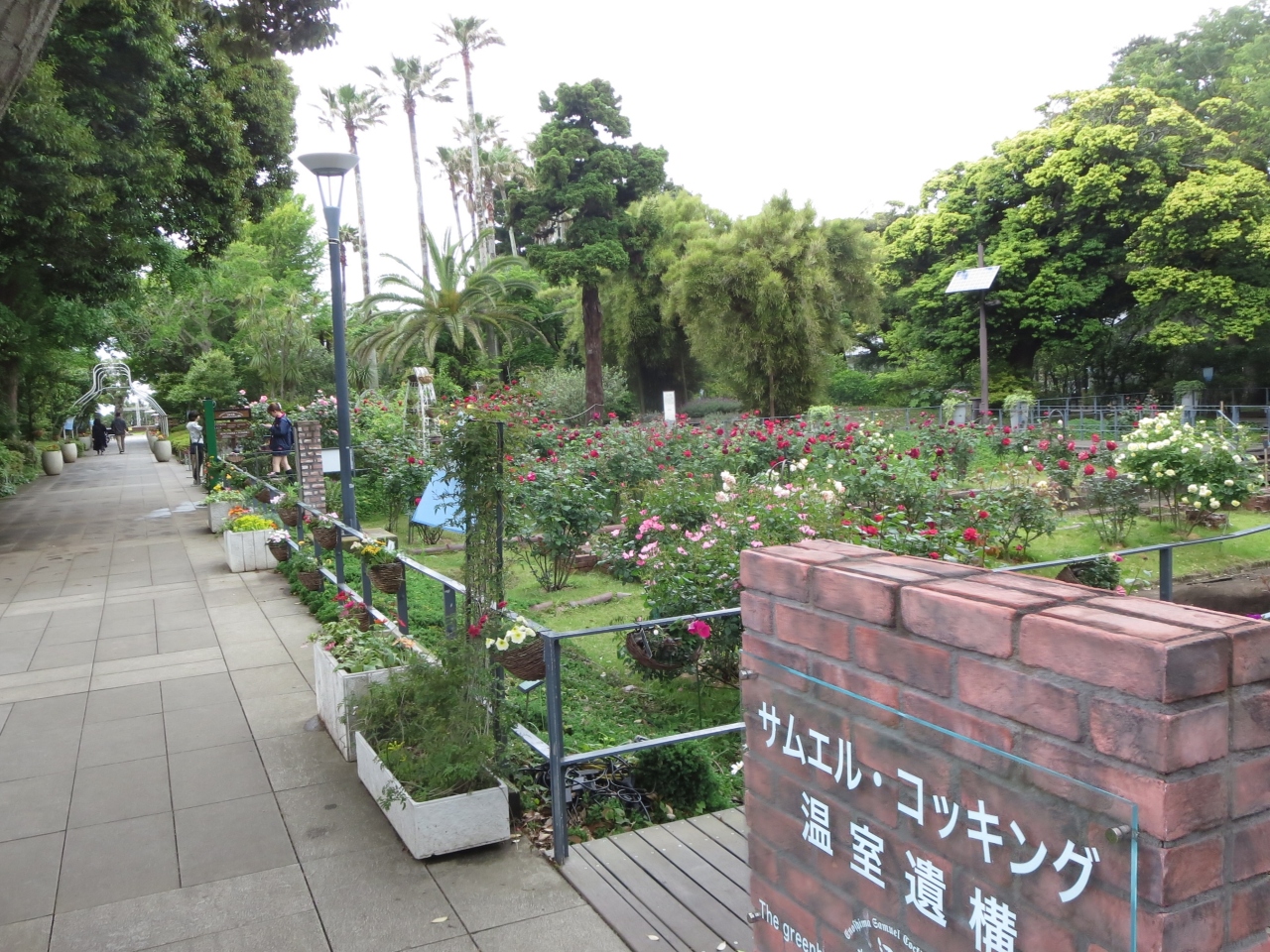 貿易商サムエル・コッキング氏が明治15年に江の島の最高点付近に作った和洋折衷の庭園跡です。面積10,000㎡以上あり、園路、築山、池、花壇、温室がありました。昭和24年に「江の島植物園」となり平成15年に「江の島サムエル・コッキング苑」としてリニューアルしました。四季の草花が植えられていますが、訪れた日はバラの季節で色鮮やかなバラがたくさんあり、よい香りがする中を歩くことができました。