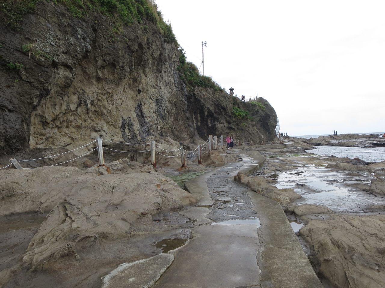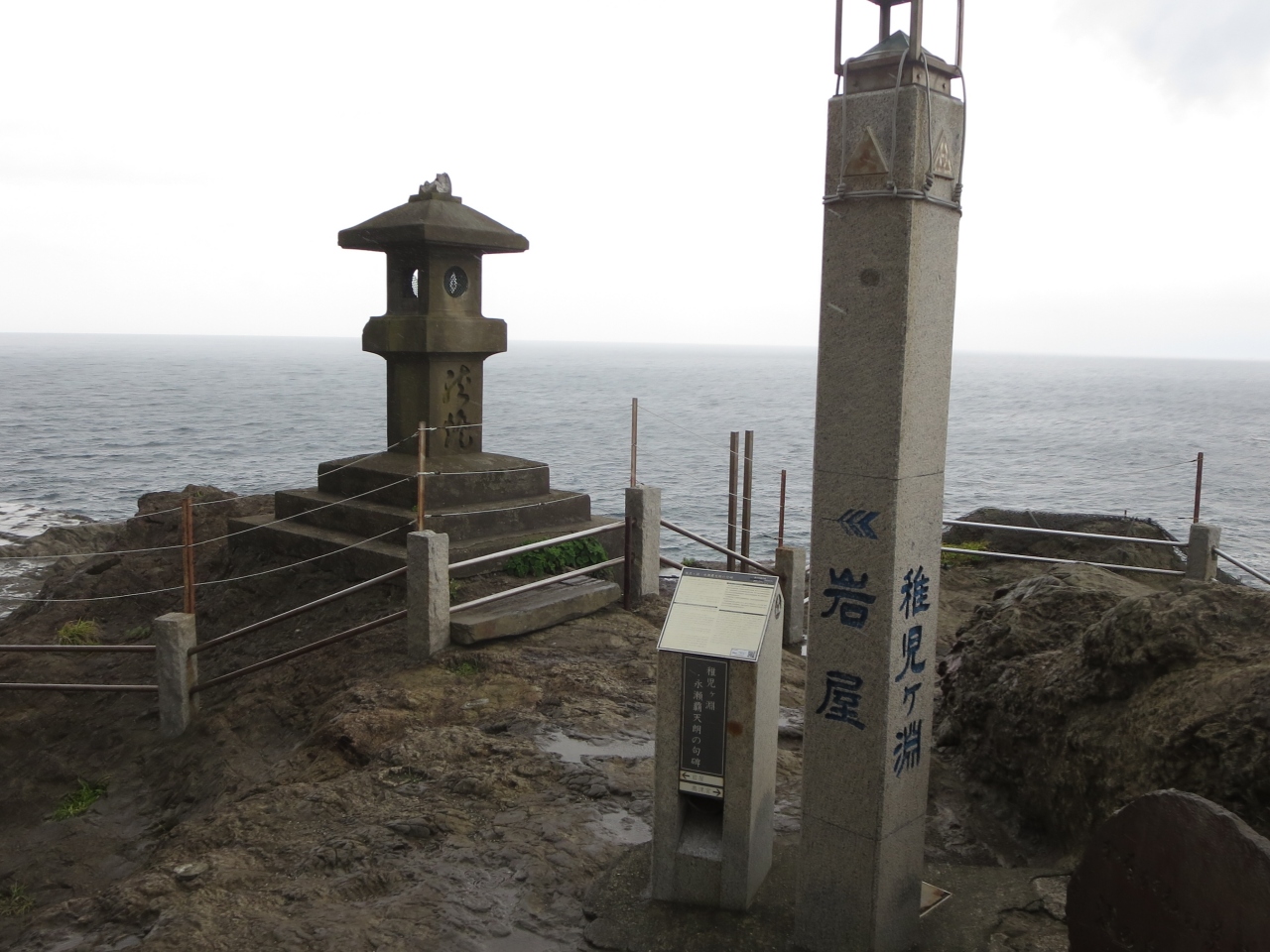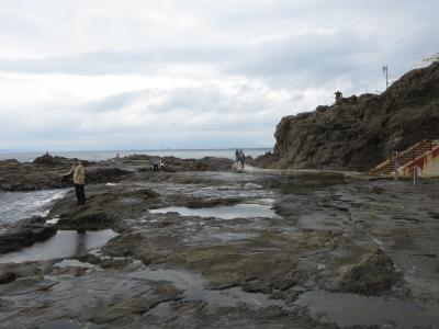 稚児ヶ淵の名の由来は、かつて稚児の白菊がある修行僧に出会い恋に落ちました。その後に思い悩んだ白菊はこの断崖絶壁から身を投げたそうです。そして恋が叶わなかった修行僧も後を追ったといわれています。江の島の西南端にある江の島岩屋付近にあり、隆起現象でできた海食台地のことを言います。断崖の急な階段を下ったところにあり、風が強く波が荒いときは下りることが禁止されます。また富士山の方向に沈む夕日がきれいことでも知られている景勝地です。訪れた日には磯釣りの方が何人も釣りを楽しんでおられました。